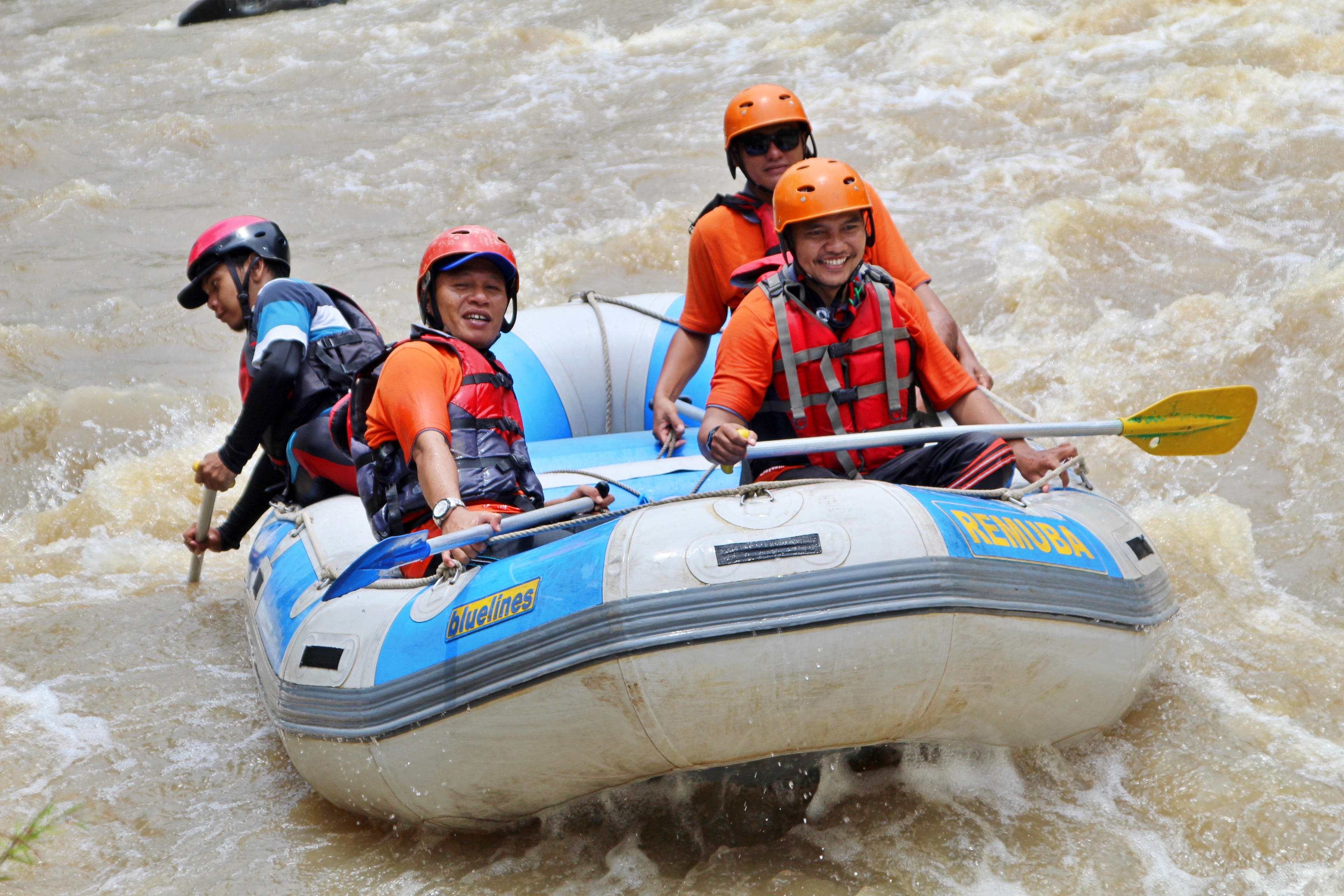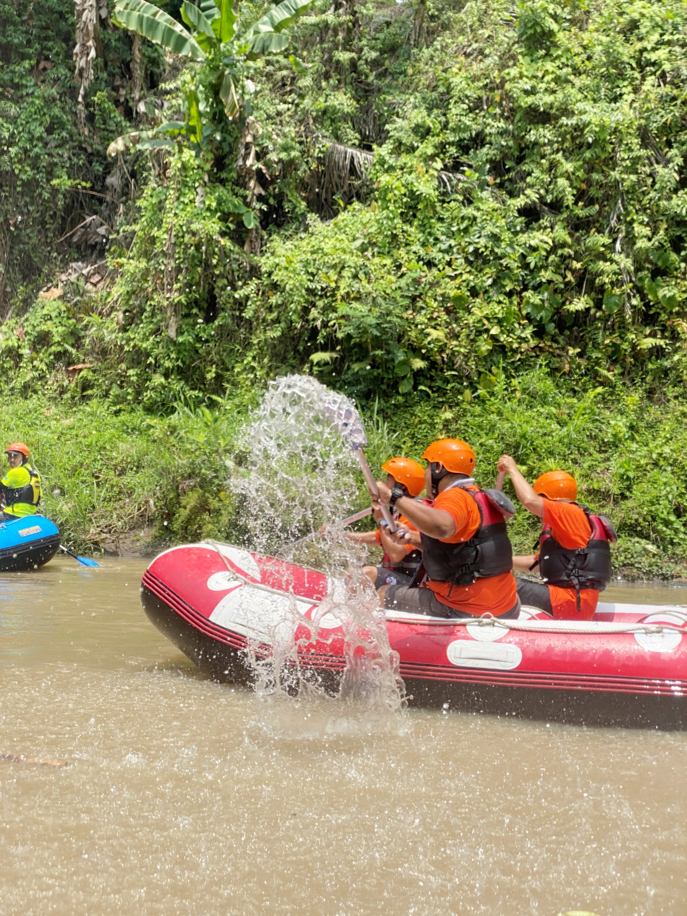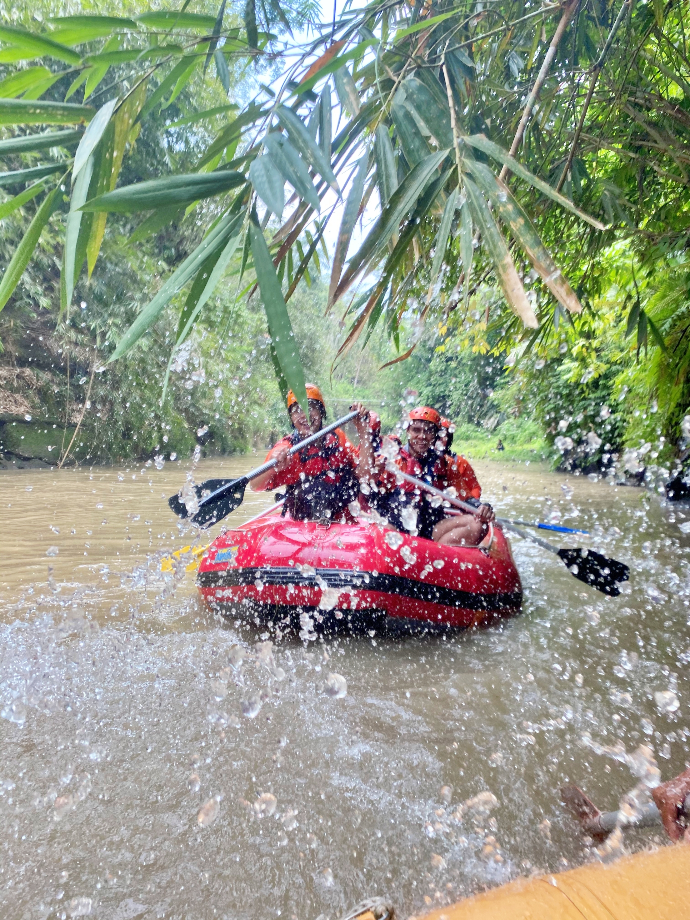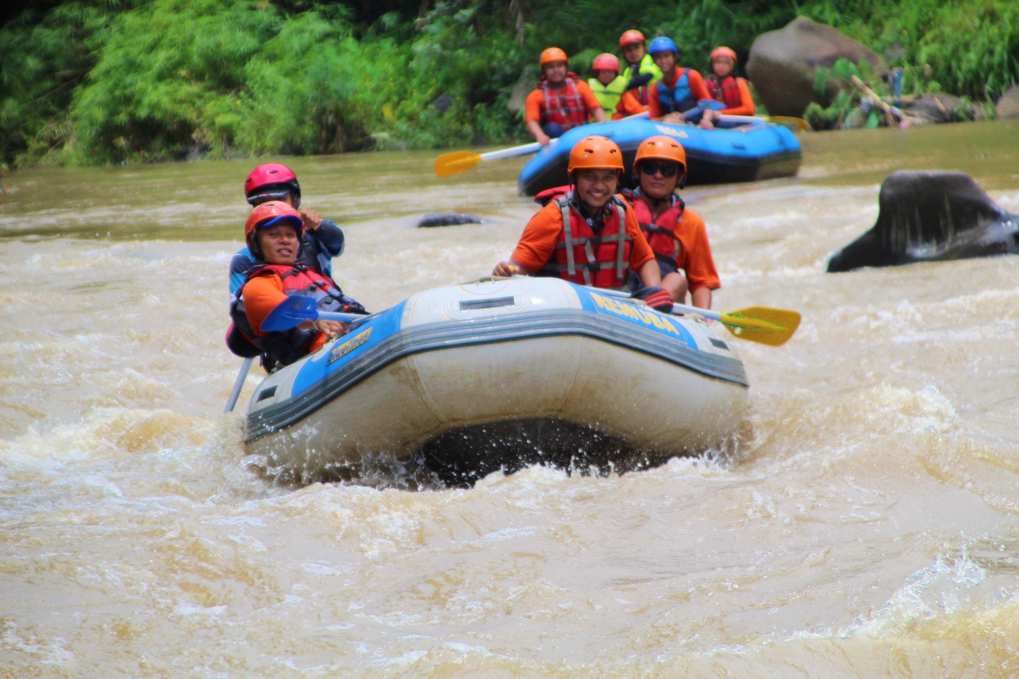 Here, our adrenaline begins to be tested, and how strong our hands are to hold and control it when needed. The safe stages have changed now, the rafting guide also starts giving signals to pedal left and right, pedaling backward to keep the boat from hitting something dangerous. His instructions signaled the current was getting stronger, the roar of the river was getting louder, and I was beginning to feel concerned. As if I was reminded of how I had to struggle to survive on the surface during the 2004 Tsunami in Aceh.