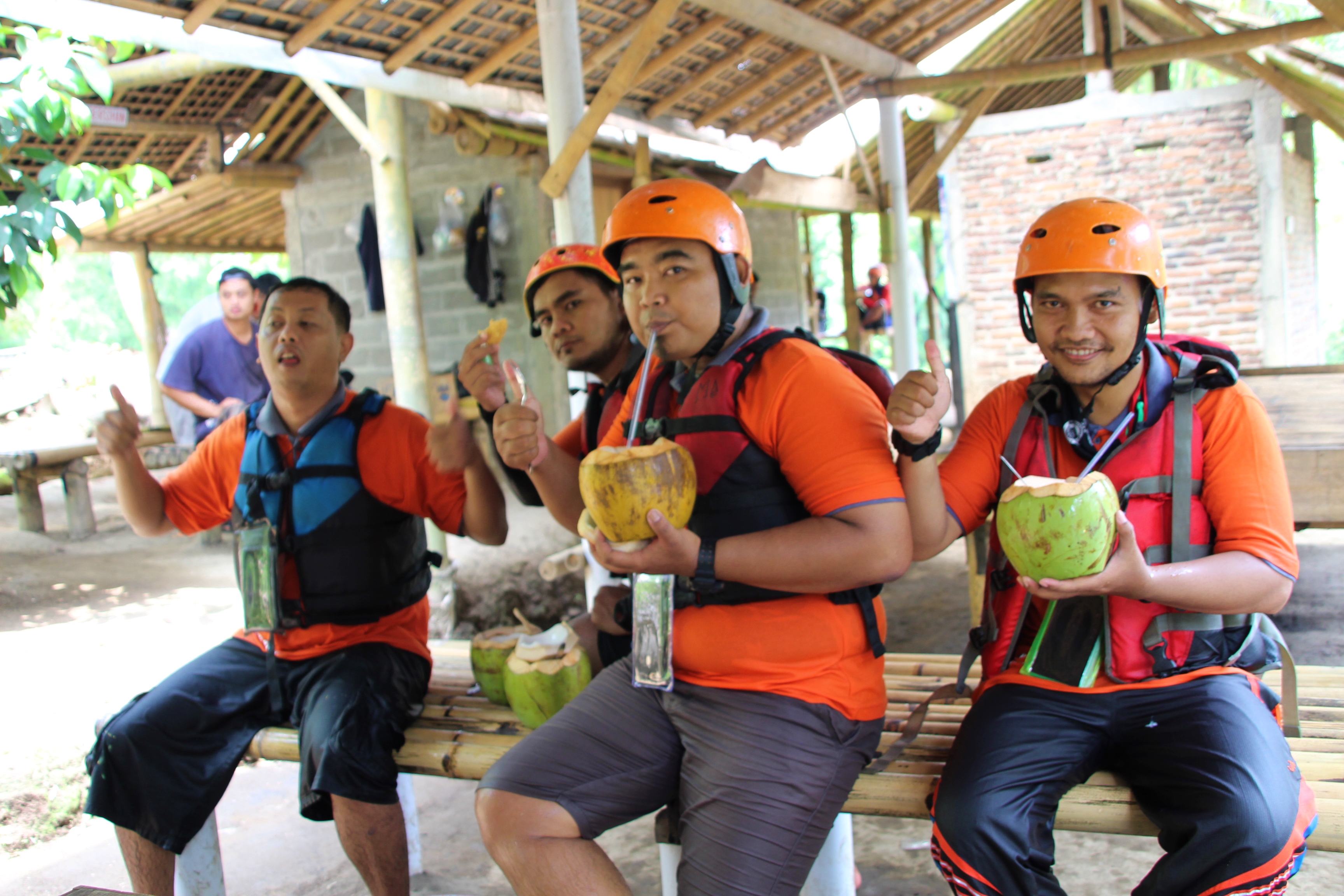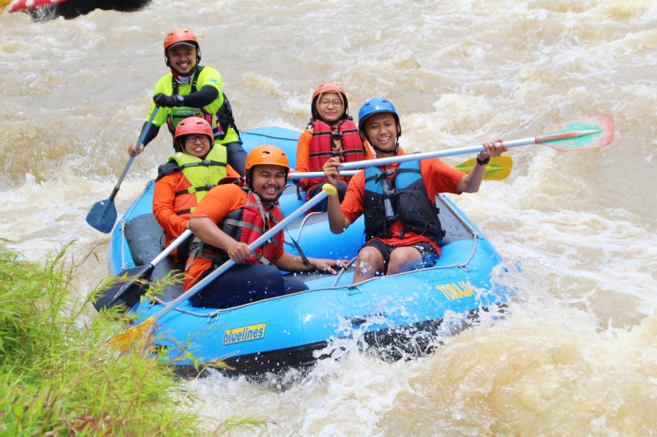 I could hear the sound of water in this river so quietly when we used the safety equipment for rafting. I hadn't seen the river, but by hearing the sound of the water, I convinced myself it was normal and there was no need to worry. At the end of the day, we're just playing on a boat and following the flow of the river. Safety equipment has also been installed properly. We started this rafting activity by praying and taking pictures together and then we walked towards the Elo river for 20 minutes.