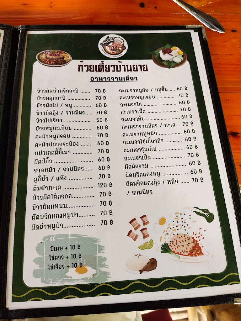 นึกภาพตามนะครับ ร้าน "ก๋วยเตี๋ยวบ้านยาย" ที่คุ้นเคย แถวบ้านเรานี่เอง! หลายคนคงรู้จักกิตติศัพท์ความอร่อยของก๋วยเตี๋ยวต้มยำรสจัดจ้าน ผัดพริกแกงหมูป่ารสเข้มข้น หมูกรอบพริเกลือกรุบกรอบ ข้าวผัดไส้กรอกหอมๆ และตำข้าวโพดไข่เค็มแซ่บๆ ที่เป็นเมนูโปรดของใครหลายๆ คนแน่นอน!