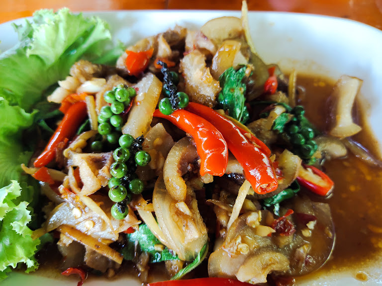 Picture this: the humble "Kway Teow Baan Yai" (Grandma's Noodle House) right here in our neighborhood. You probably know them for their killer Tom Yum noodles, that fiery Pad Prik Gaeng Moo Pa (wild boar red curry stir-fry), the crispy Moo Krob Prik Klua (salt and pepper crispy pork belly), the comforting Kao Pad Sai Krok (fried rice with sausage), and oh-so-addictive Tam Khao Pod Kai Kem (corn salad with salted egg). Trust me, their savory menu is legendary!