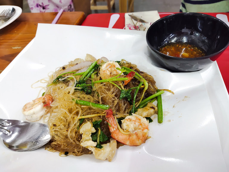 Next in line was the Goong Ob Woonsen (Baked Prawns with Glass Noodles). Now, this wasn't just a dish, it was an experience! Plump, juicy prawns nestled amongst slippery, perfectly seasoned glass noodles, all infused with the aromatic magic of garlic, ginger, and a hint of sweetness. It was comforting, it was decadent, it was gone in approximately 60 seconds!