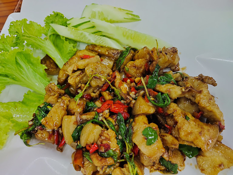 Last, but certainly not least, the Pad Phet Moo Paa (Spicy Wild Boar Stir-fry). Hold onto your hats, folks, because this dish is a flavor rollercoaster! Tender pieces of wild boar stir-fried with a fiery red curry paste, crunchy green peppercorns, and fragrant Thai basil. It was bold, it was intense, it was the kind of dish that makes you close your eyes and just savor the moment.