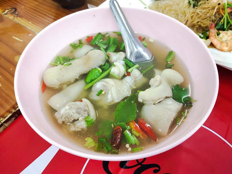 Then came the Tom Saap Gradook Moo (Spicy Pork Rib Soup). Forget your regular pork soup, this was a full-on flavor adventure! Tender pork ribs simmered in a broth that was a symphony of sour, spicy, and savory notes, with a generous scattering of fragrant herbs. Each spoonful was like a warm, comforting hug with a cheeky little spicy kick!
