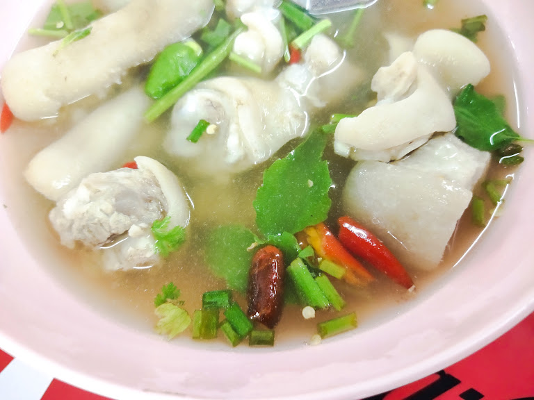 แล้วก็ตามมาด้วย ต้มแซ่บกระดูกหมู! ลืมต้มกระดูกหมูแบบเดิมๆ ไปได้เลยครับ เพราะนี่คือการผจญภัยในรสชาติอย่างแท้จริง! กระดูกหมูอ่อนนุ่ม เคี่ยวในน้ำซุปที่ผสมผสานรสชาติเปรี้ยว เผ็ด และเค็ม ได้อย่างลงตัว พร้อมด้วยสมุนไพรหอมๆ โรยหน้าแบบไม่ยั้ง ทุกๆ ซดคืออ้อมกอดอันอบอุ่นที่มาพร้อมกับลูกเตะเบาๆ ของพริก!