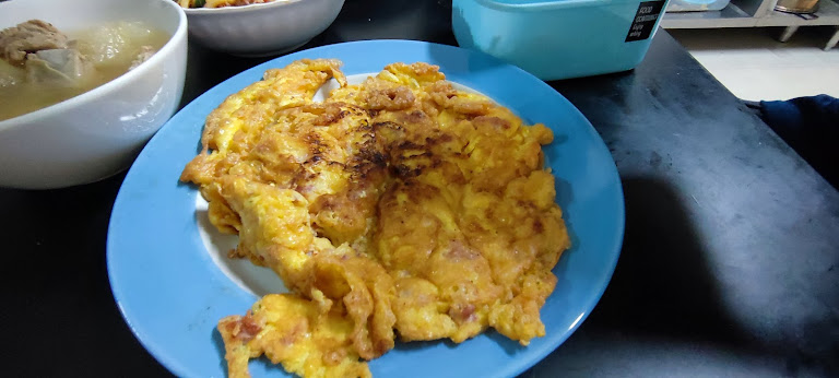 ปิดท้ายด้วยความตระการตา! ดูความฟู่นั่นสิครับคุณผู้ชม! นี่ไม่ใช่แค่ไข่เจียว แต่มันคือ ก้อนเมฆสีทองที่กรอบนอกนุ่มใน ขอบไข่ที่ทอดจนกรอบเป็นแพสวยงาม ทานคู่กับซอสพริกหรือน้ำปลาพริกนะ... หืมมม สวรรค์อยู่ตรงนี้นี่เอง!