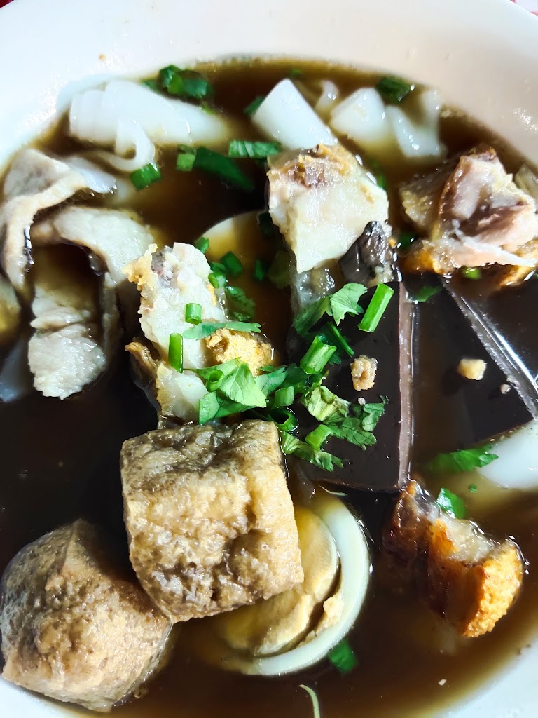 และเครื่องเคียง! โอ้โห...เครื่องเคียงนี่แหละครับคือสุดยอด! มันคือเทศกาลหมูที่มารวมตัวกันอย่างยิ่งใหญ่ มีทั้งหมูตุ๋นที่นุ่มละลายในปาก เครื่องในชิ้นโต และที่ขาดไม่ได้เลยคือราชาแห่งชาม – หมูกรอบ! เสียง กร๊วบ ตอนที่คุณกัดเข้าไป ตามมาด้วยเนื้อหมูชุ่มฉ่ำ...มันคือสวรรค์บนดินชัดๆ เพิ่มไข่ต้มอีกสักฟอง โรยด้วยกระเทียมเจียวกับผักชีสดๆ แค่นี้คุณก็จะได้ก๋วยจั๊บที่สมบูรณ์แบบที่สุดในความเห็นของผมแล้ว