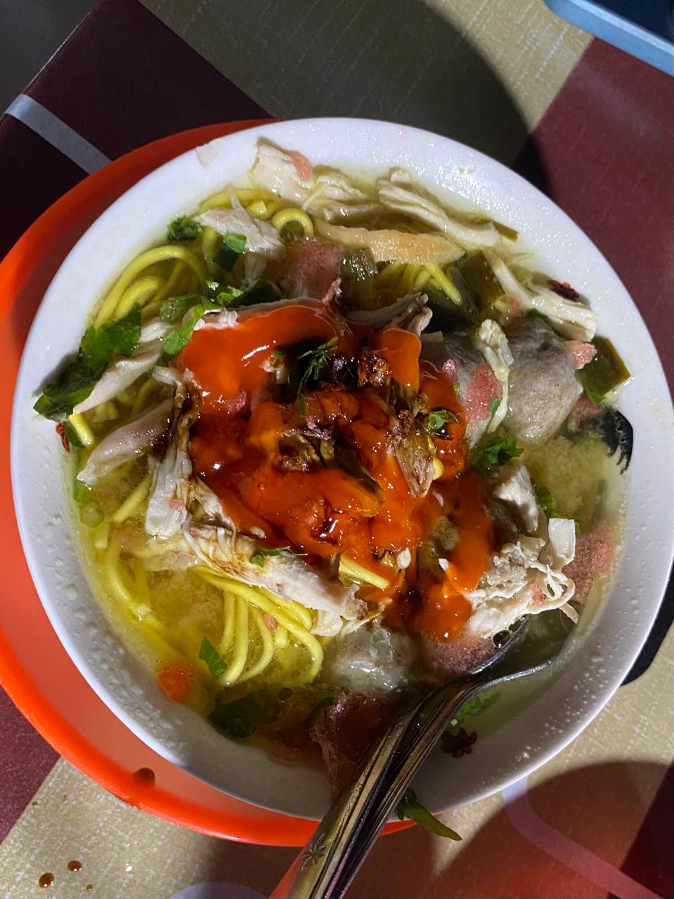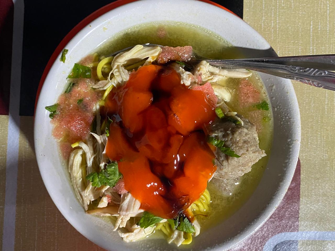 This food is called chicken meatballs. This food also comes from Indonesia. This food is also a favorite food for Indonesian citizens, although in terms of appearance it is not luxurious, but I myself gave this food a rating of 8, This food is made from chicken, hun noodles, yellow noodles and hot soto sauce. Don't forget, if you want to make the taste to the highest level, add a little chili to the sauce, but if you don't want a strong spicy taste, add the sauce. For each flavor you want, you just need to add and subtract the sauce you want to add.