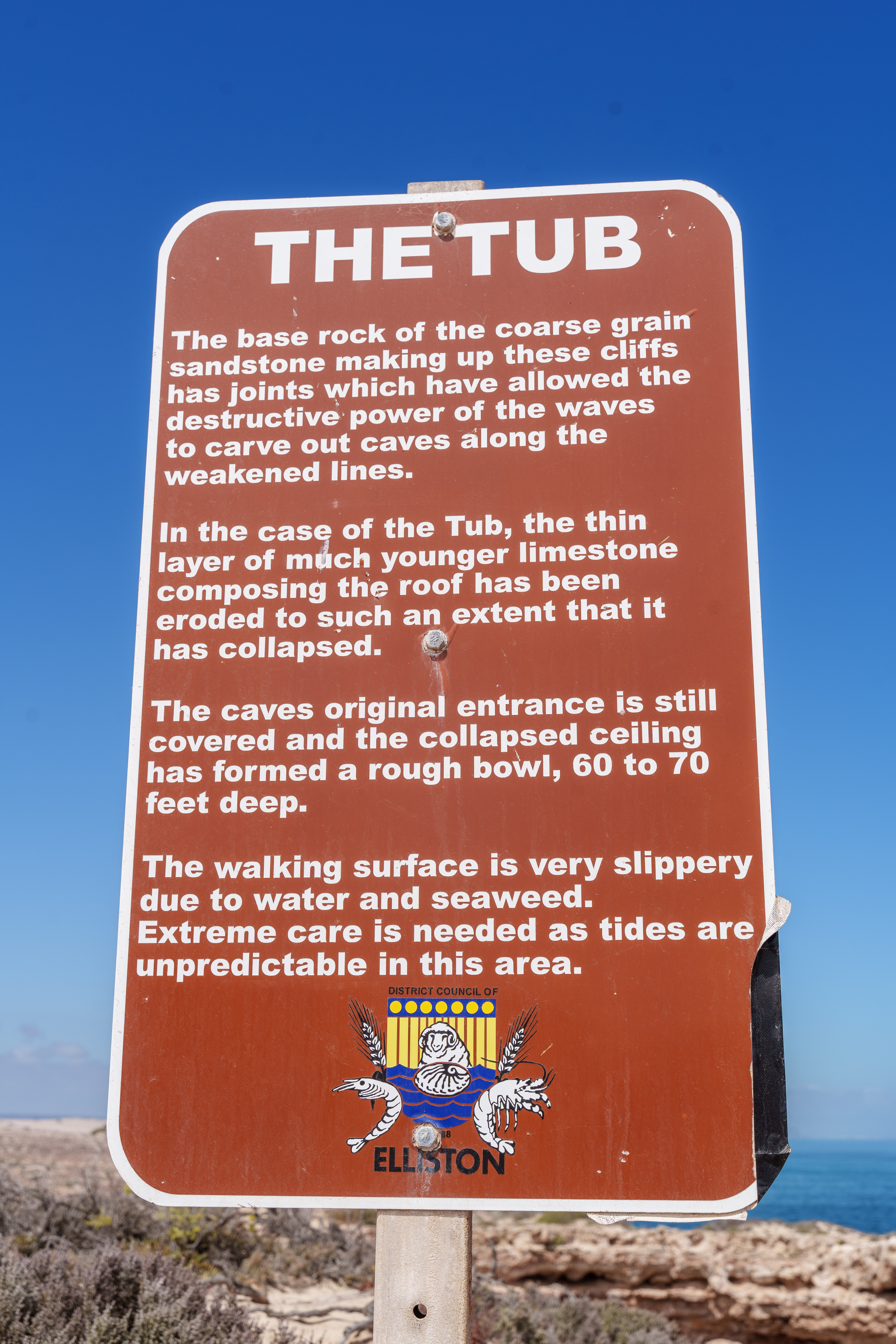 About 40 kms out of Talia down a dusty and corrugated road on South Australia's Eyre Peninsula are coastal features like the Tub and the Woolshed Caves and some really beautiful inlets that have cut their way into the rocks. The Tub is well worth a look after the bumpy drive.