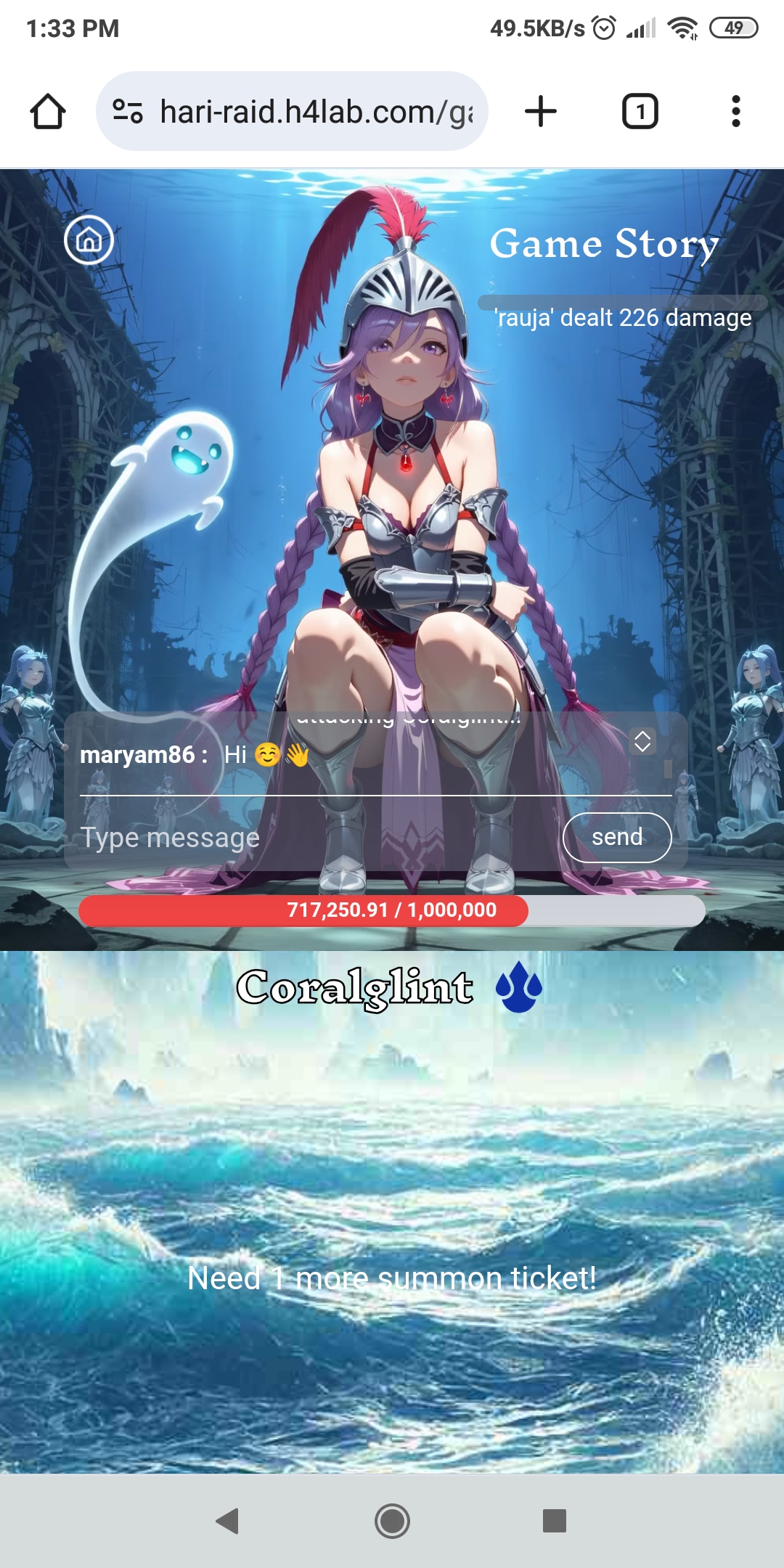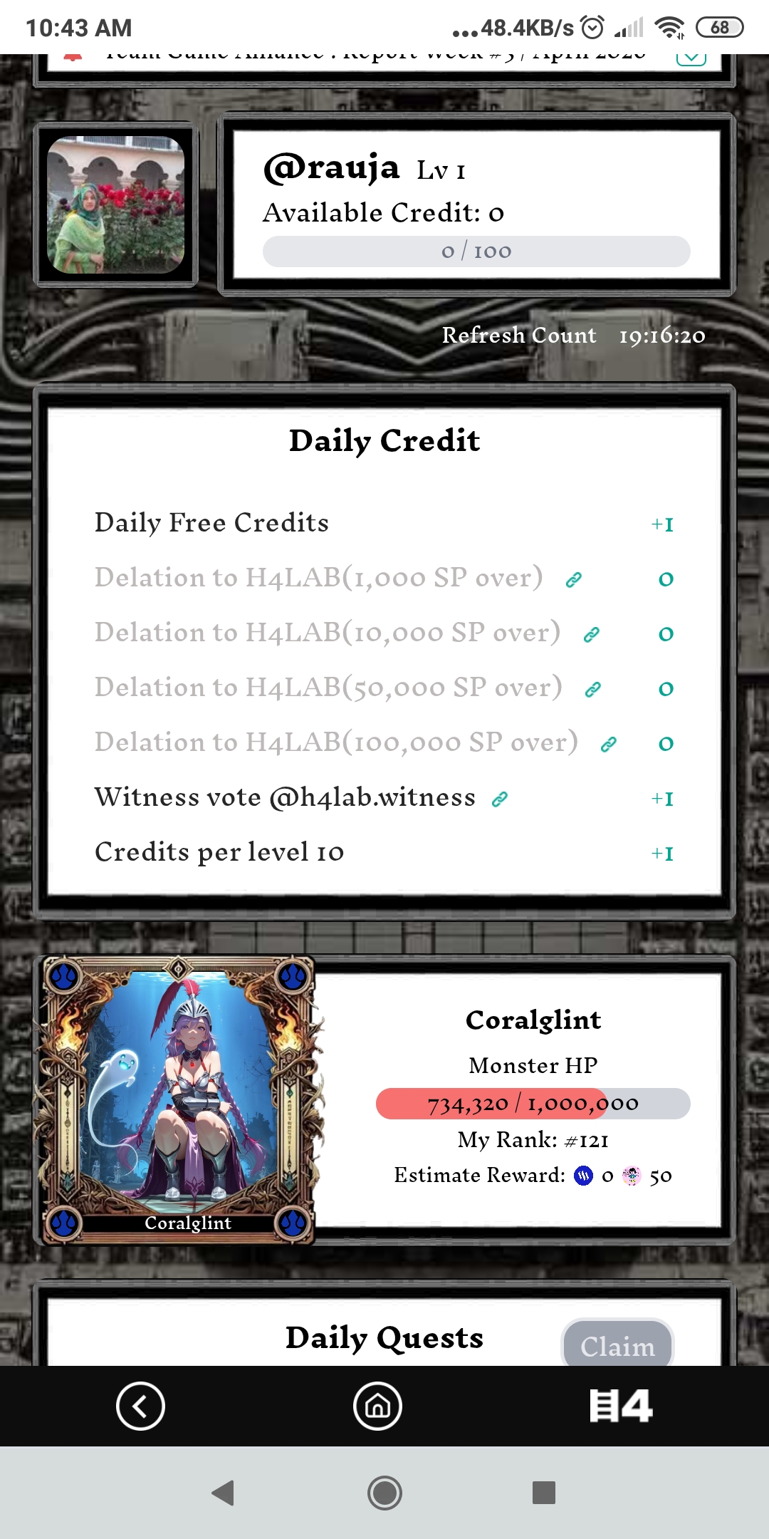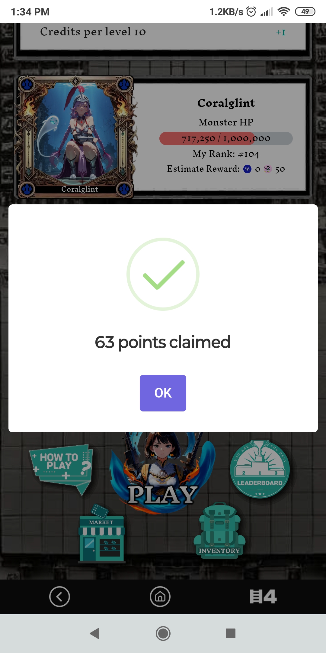 After finishing the game, I claim (63)points from Daily Quest and earn the points.I will definitely come back soon and play this hari raid game.Also share my gaming experience with my all friends.After today's attack my total dealt is (114+306+226)=646damage. At the end of today’s game, my rank improved a bit. From #123 climbed to #104 and monster(coralglint ) HP 717,250/1000000.