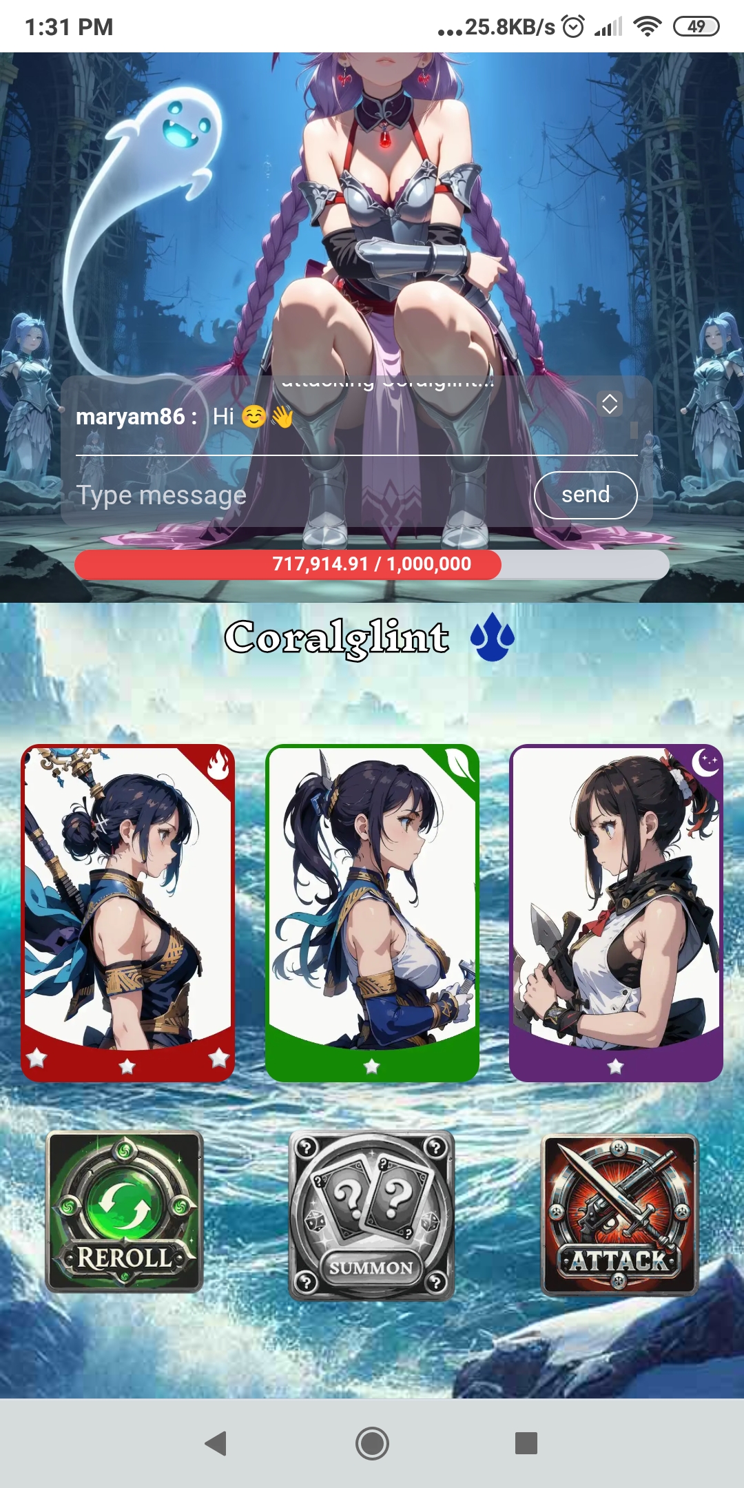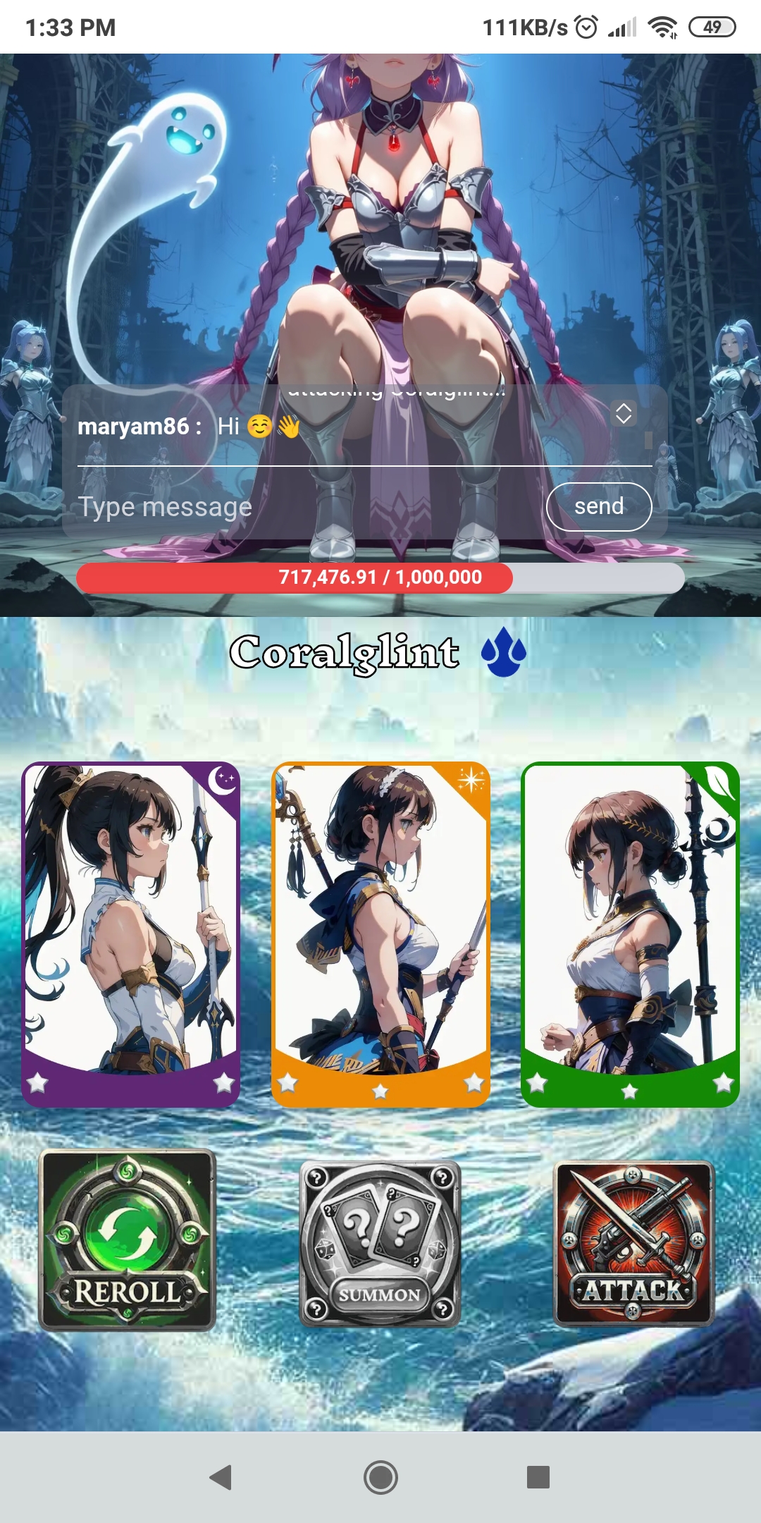 For play the third attack, I click on summon option. After the third summon, I received two epic cards like frist attack. But I don't go for reroll option. So I click attack option.After third summon three cards I got are-