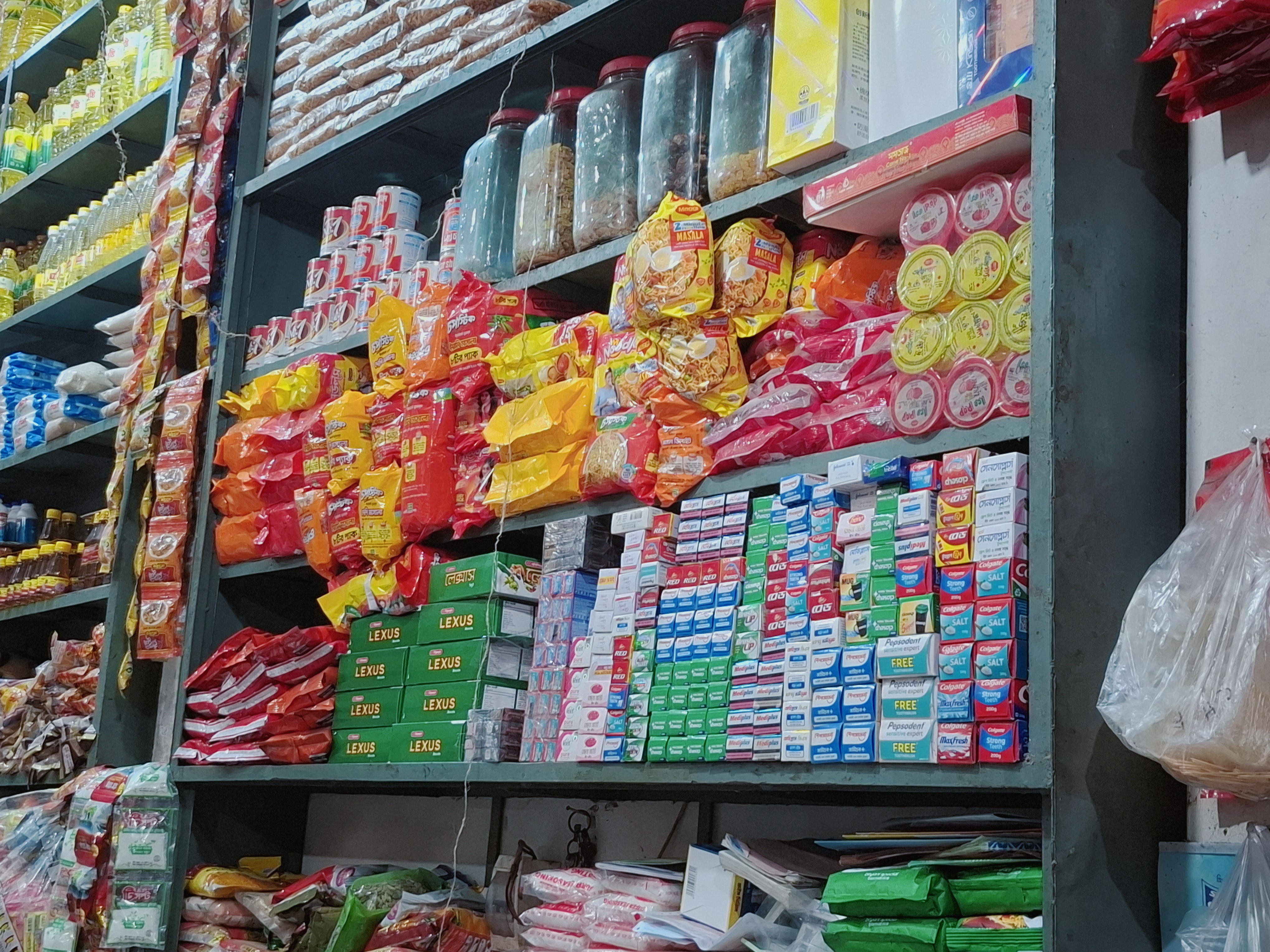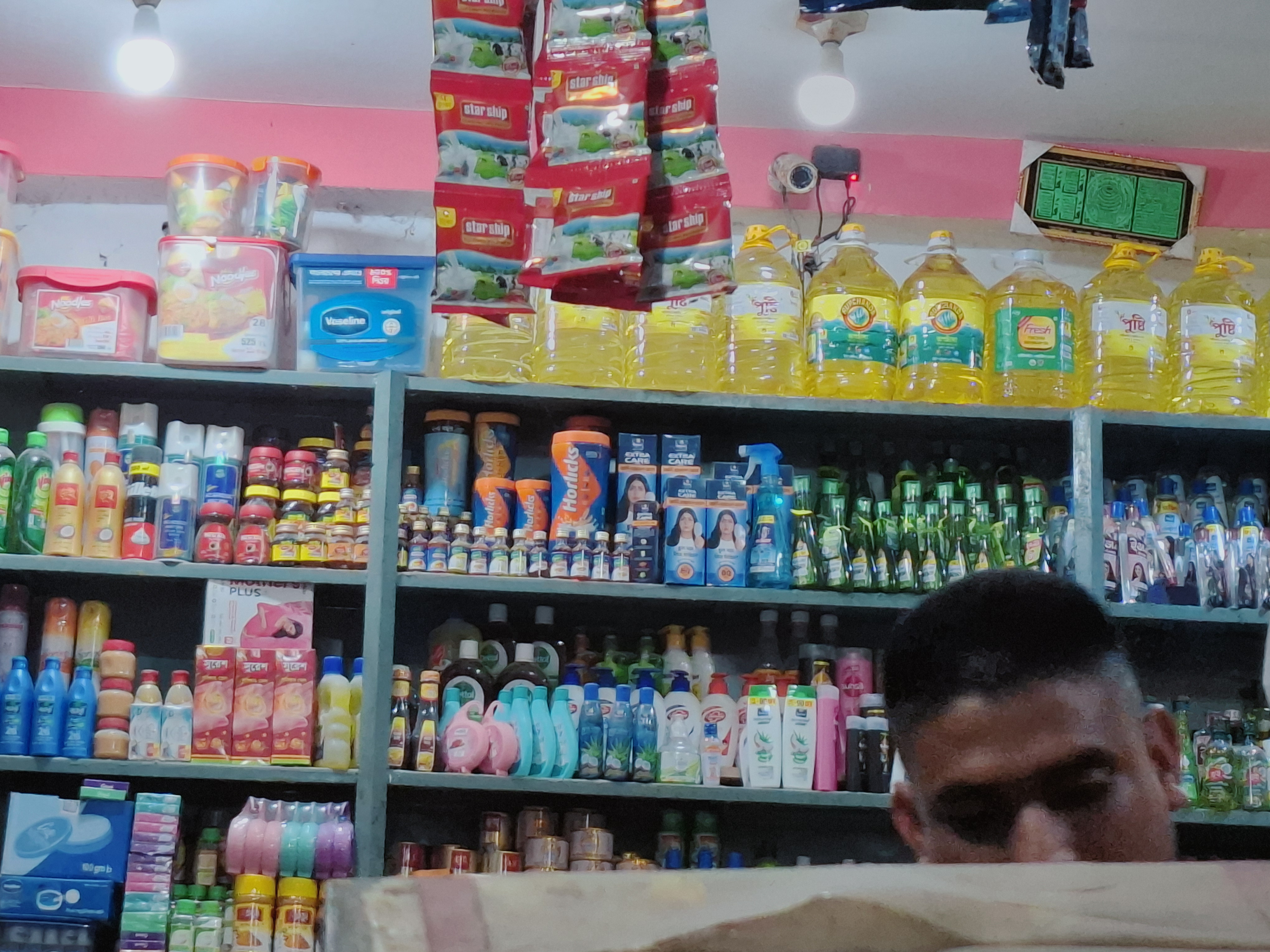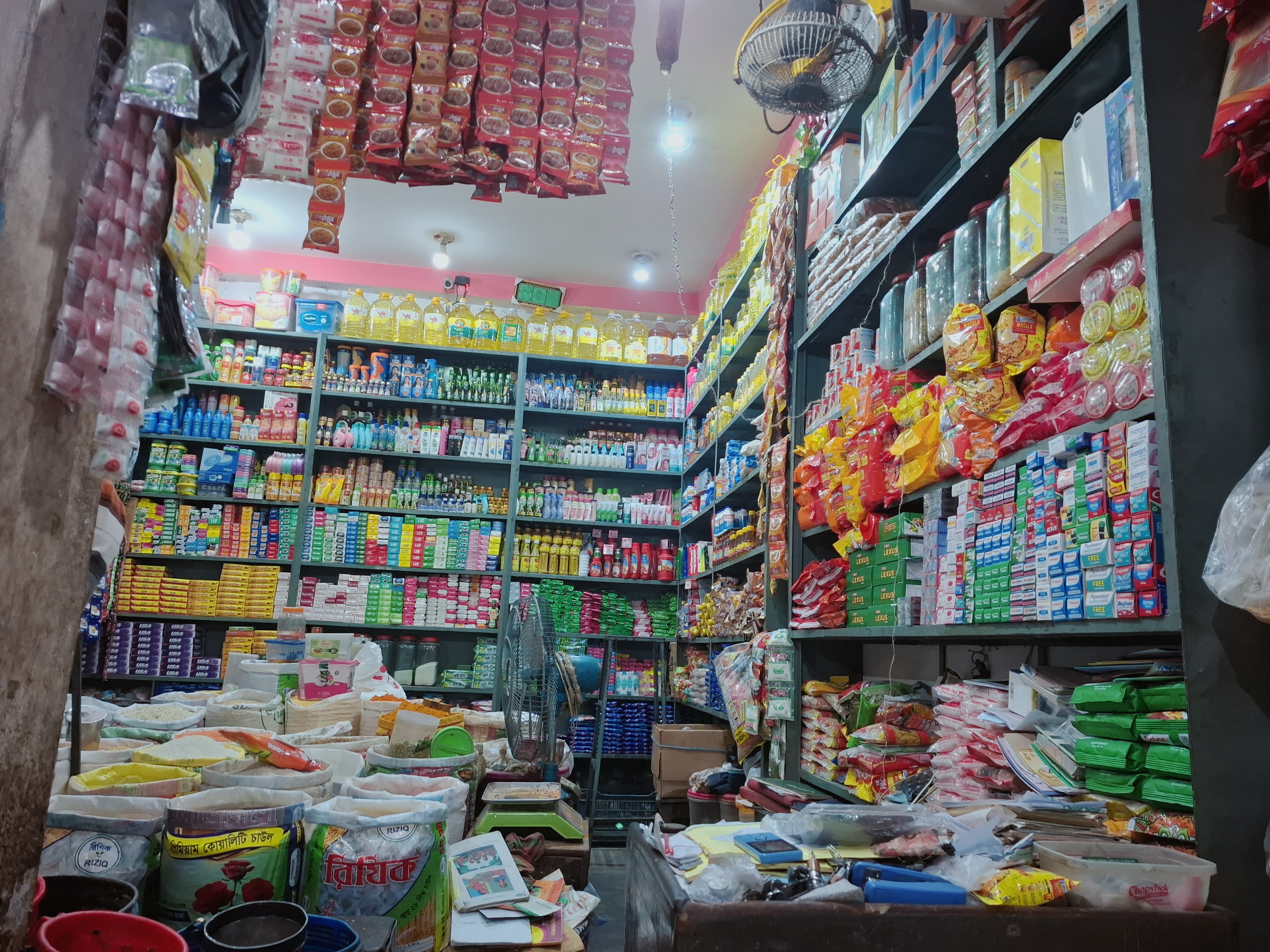 The name of this shop is Mizan Store. It is located in the New Market area of Parbatipur town. Normally, the shop stays open from 9:00 AM to 10:00 PM, but currently it operates from 9:00 AM to 7:00 PM.