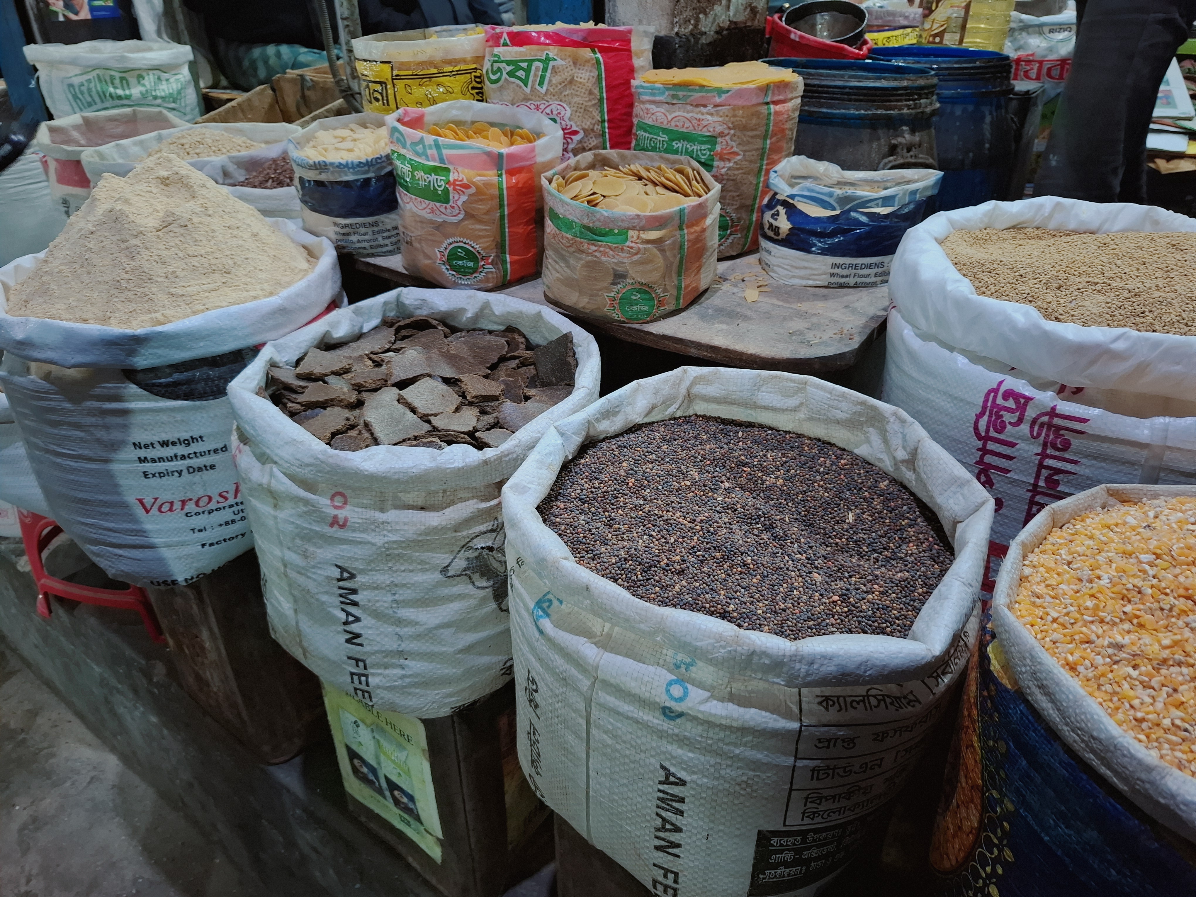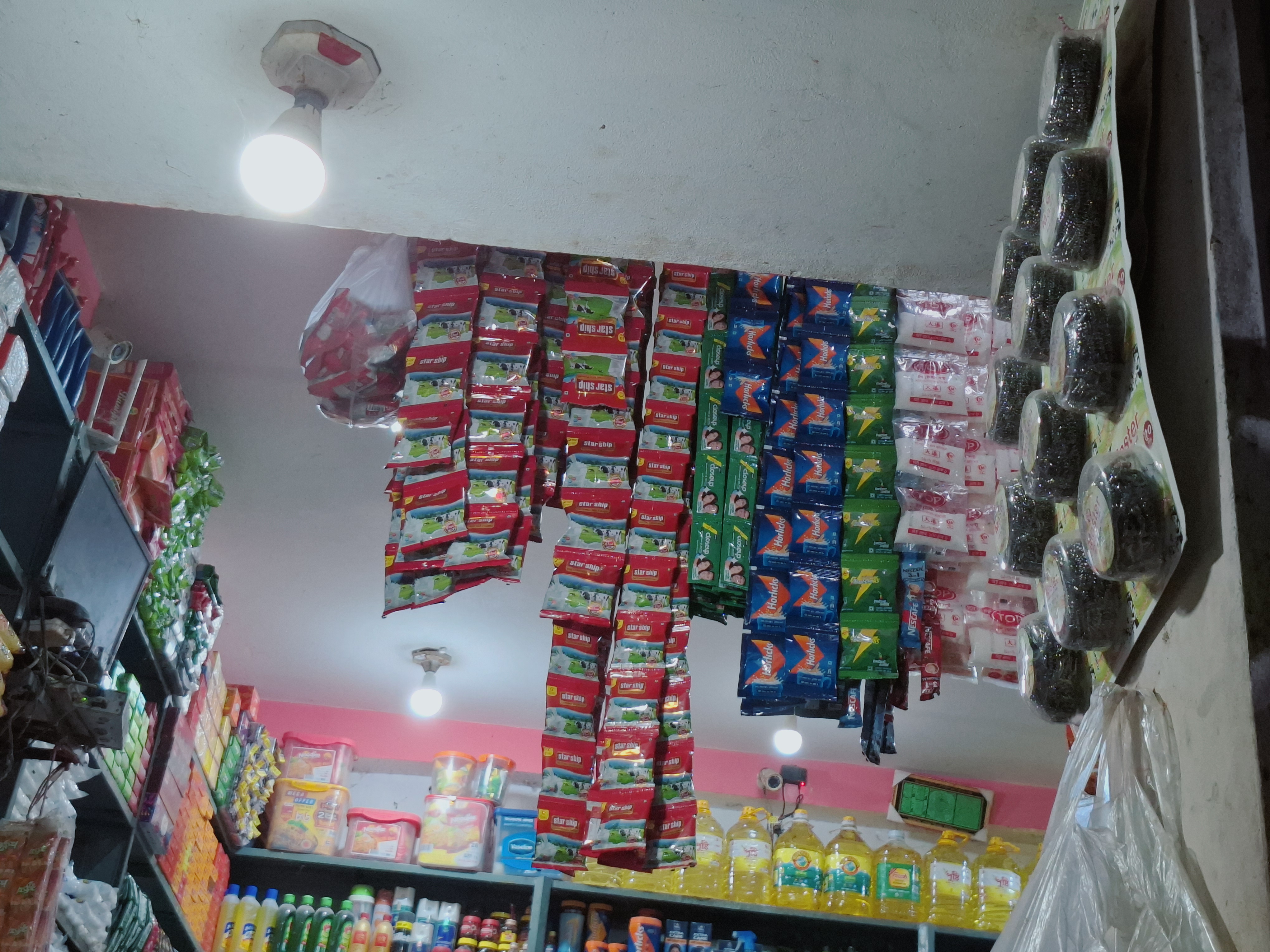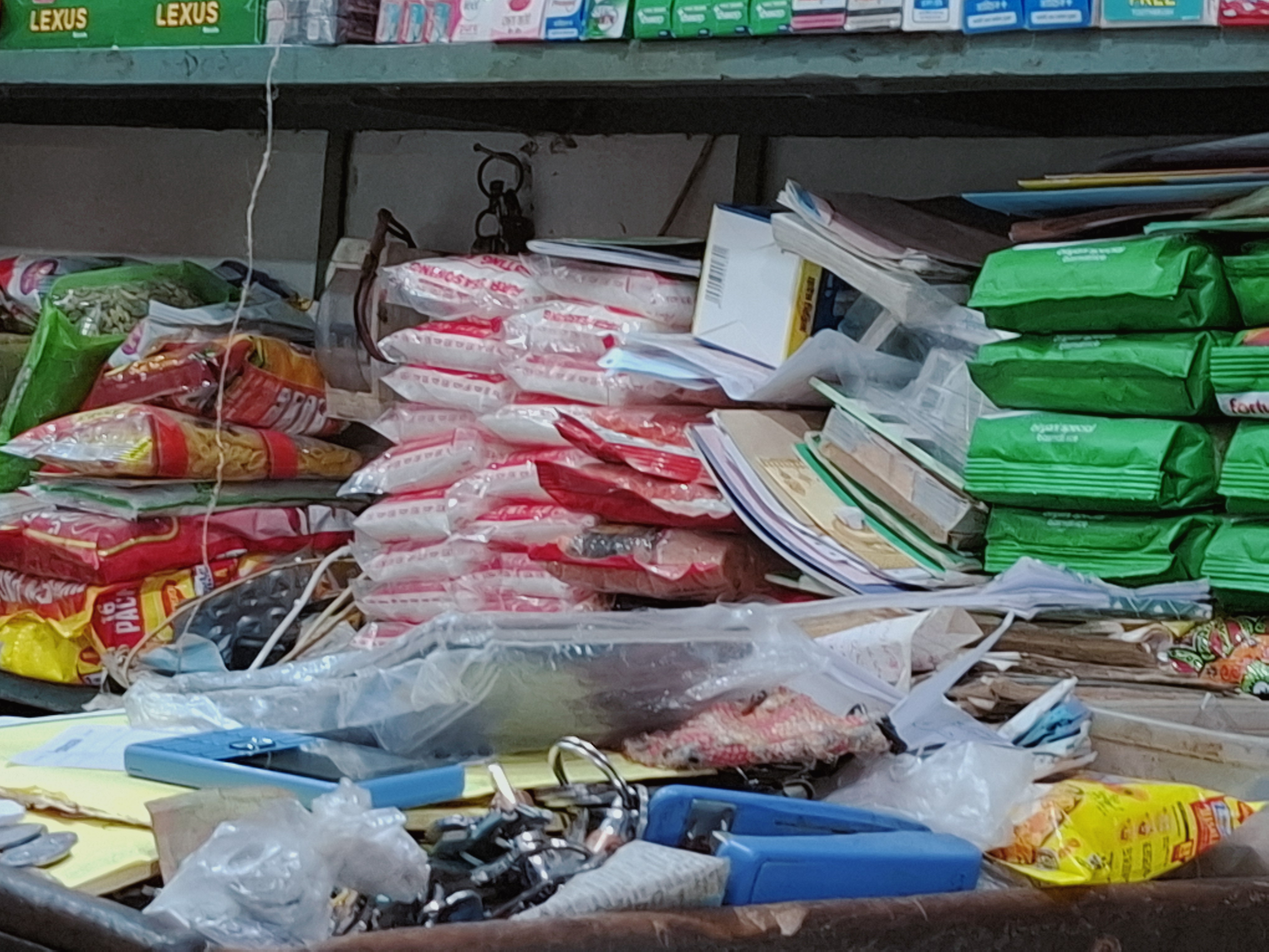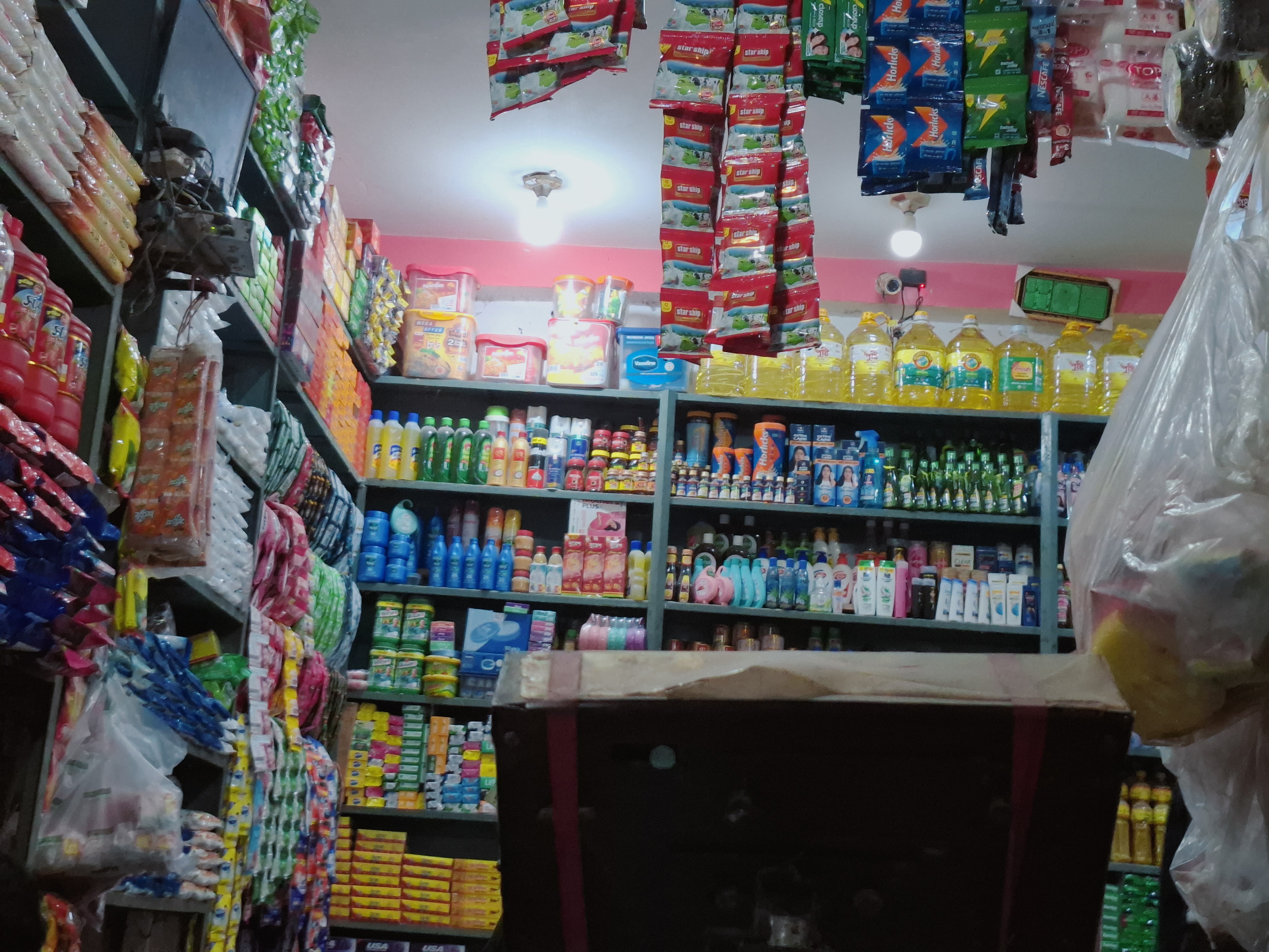 Since this is a grocery shop, many types of daily essential items are available here. Some of the main products include rice, lentils, flour, maida, semolina, oil, soap, powder, biscuits, cookies, and many more items like snacks and papad. All items are sold at reasonable prices.