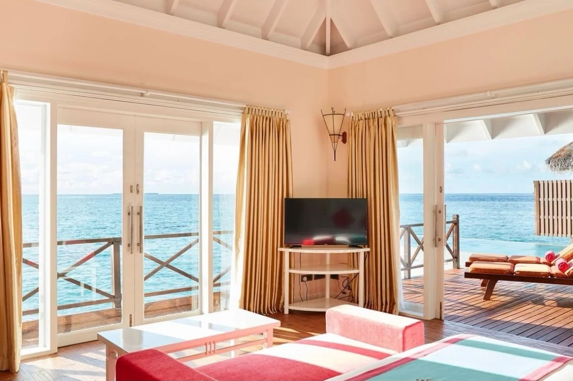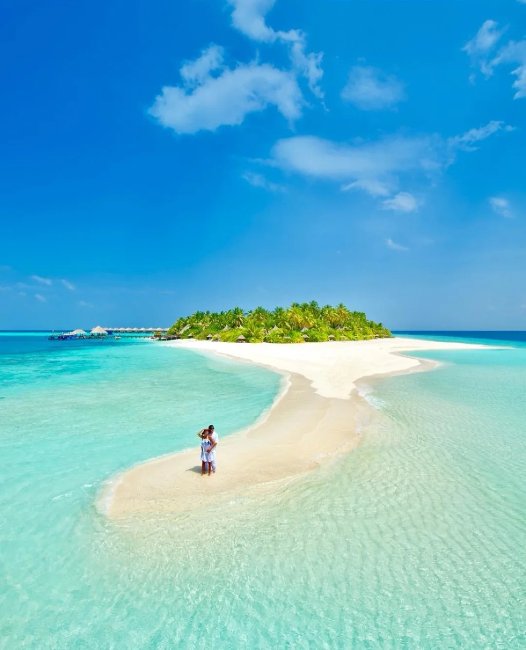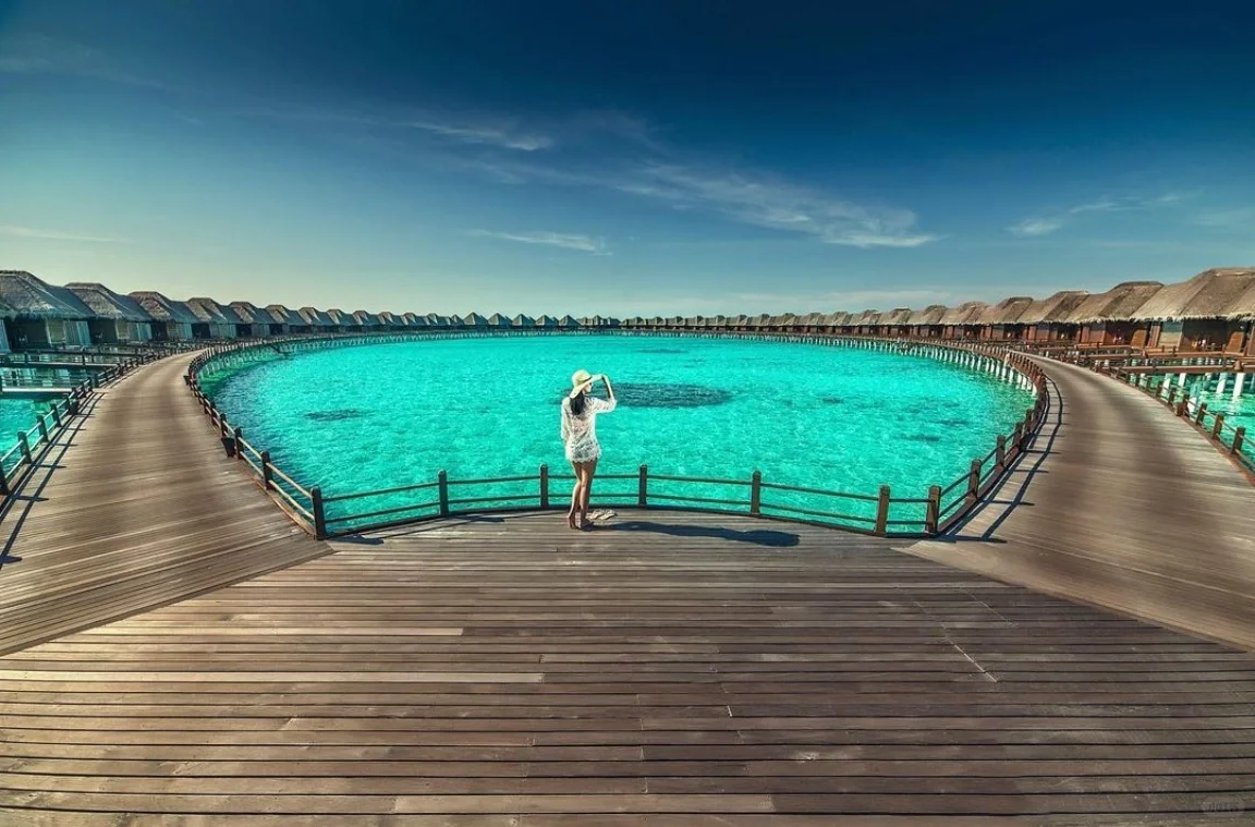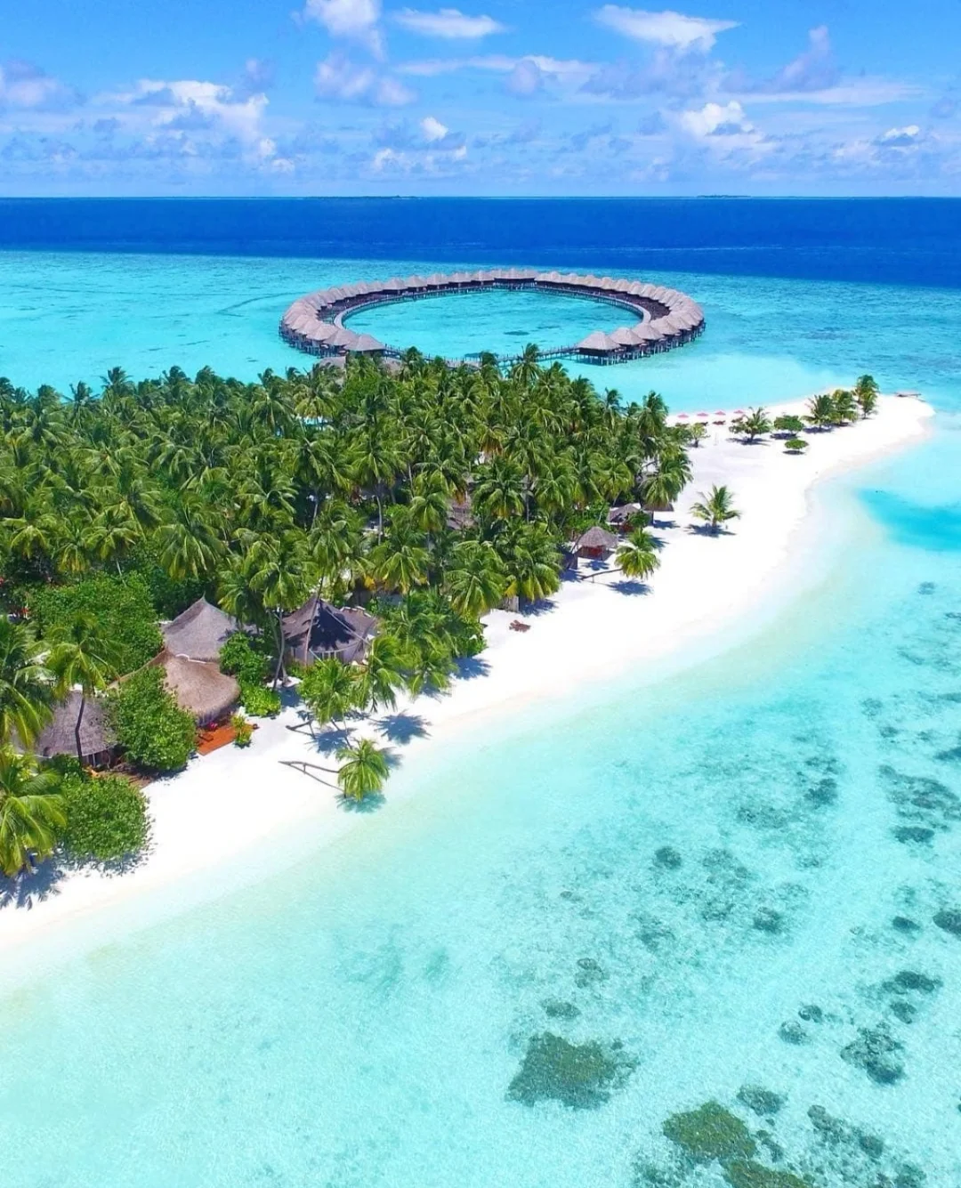 Meeru Island Resort & Spa in the Maldives is the quintessential tropical paradise. It is gently cradled by a massive, turquoise lagoon, and its sugar-fine beaches shimmer under the tropical sun. The island is dotted with towering coconut palms, casting dappled shadows over the iconic overwater villas. Here, time seems to slow down: you can dive into the coral reefs to dance with schools of colorful fish, or simply lounge on your deck, allowing the ocean's soft whispers to cleanse your soul. Meeru is more than a resort; it is the ultimate promise of tranquility, purity, and eternal romance.