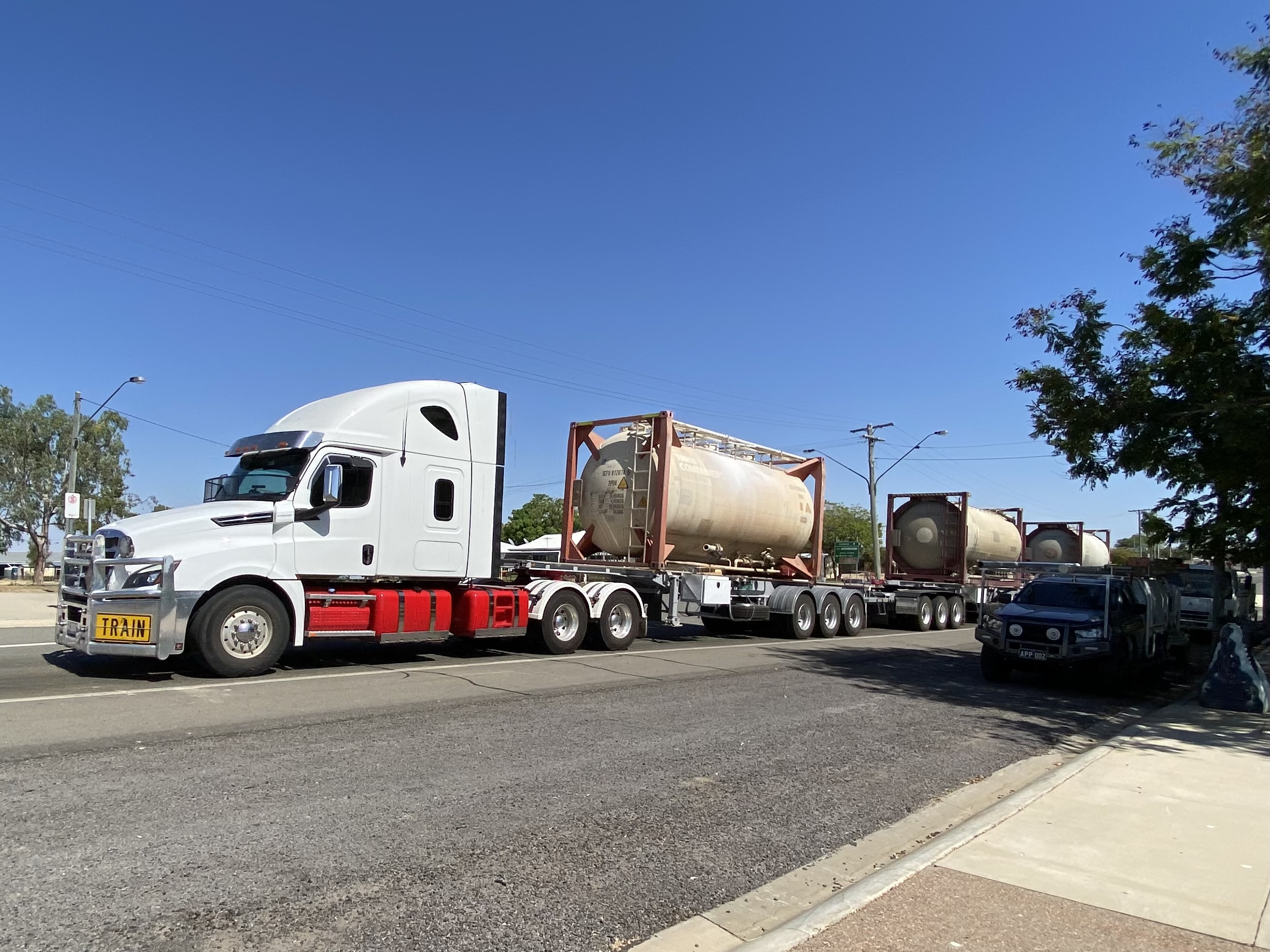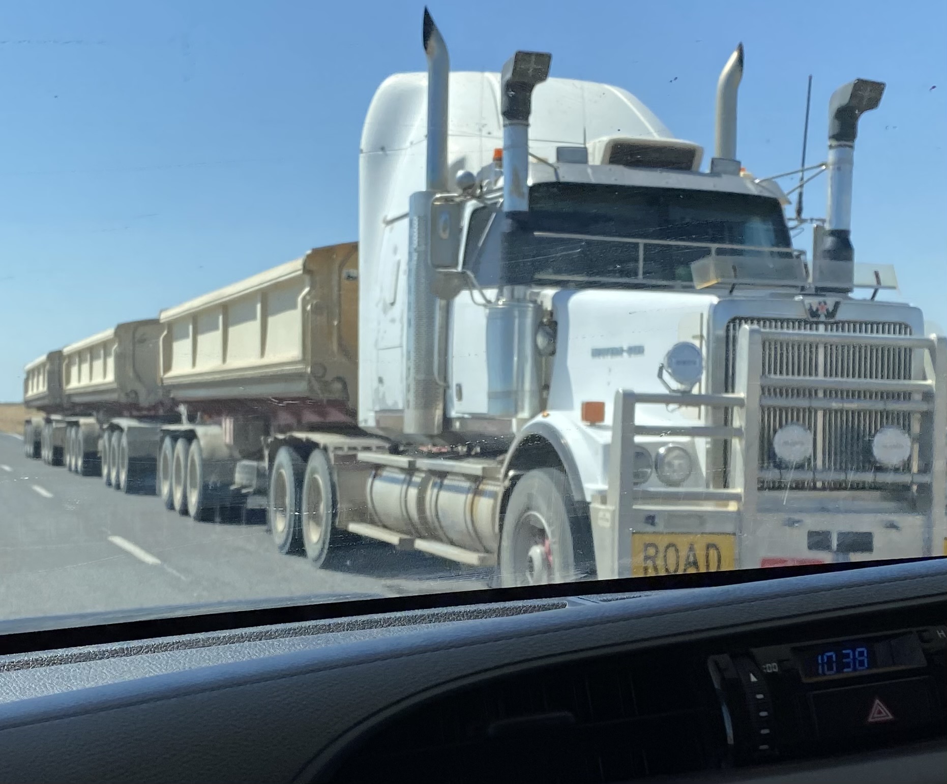 Roadtrains carrying a variety of goods are a common sight in outback Australia.