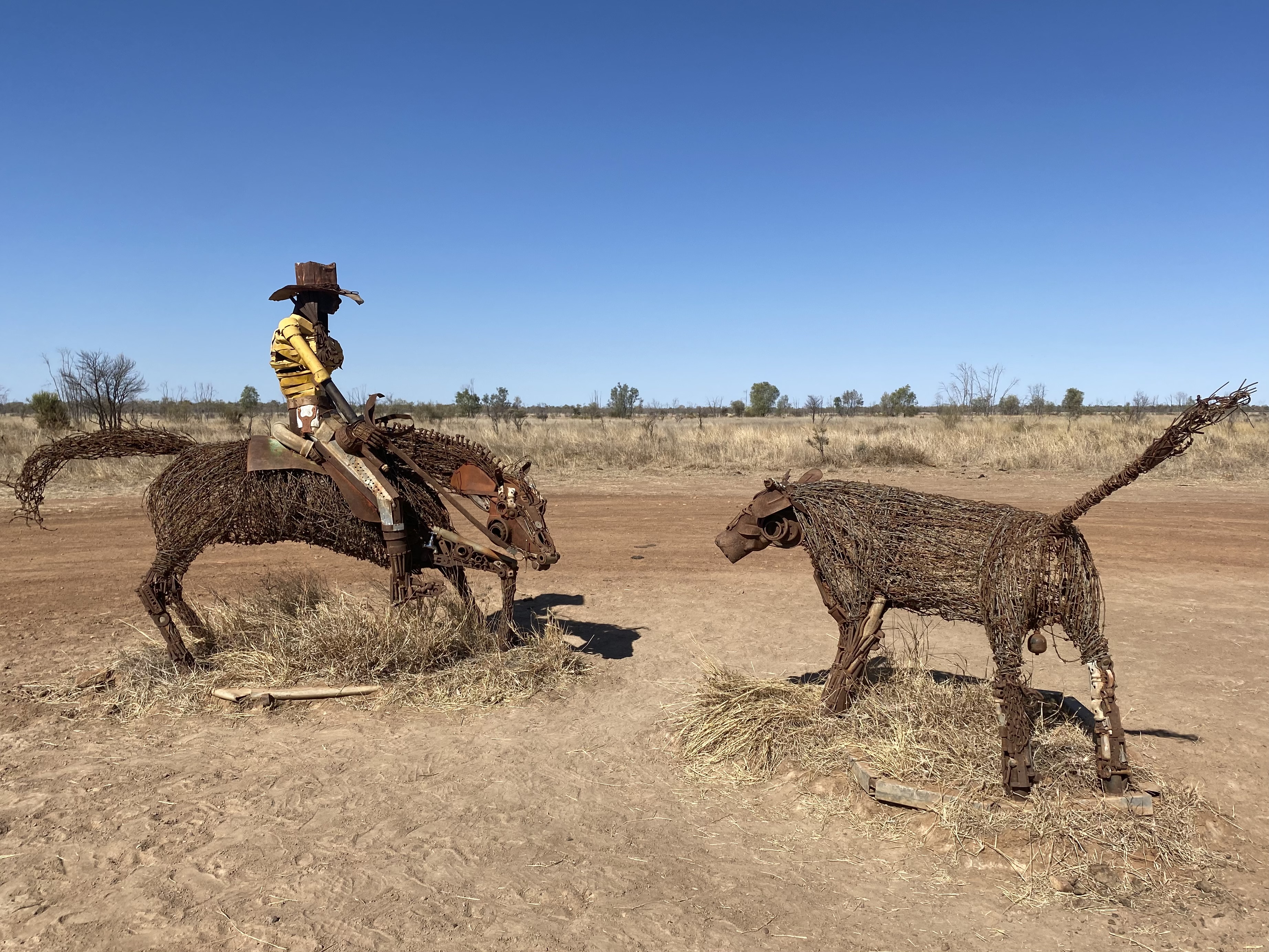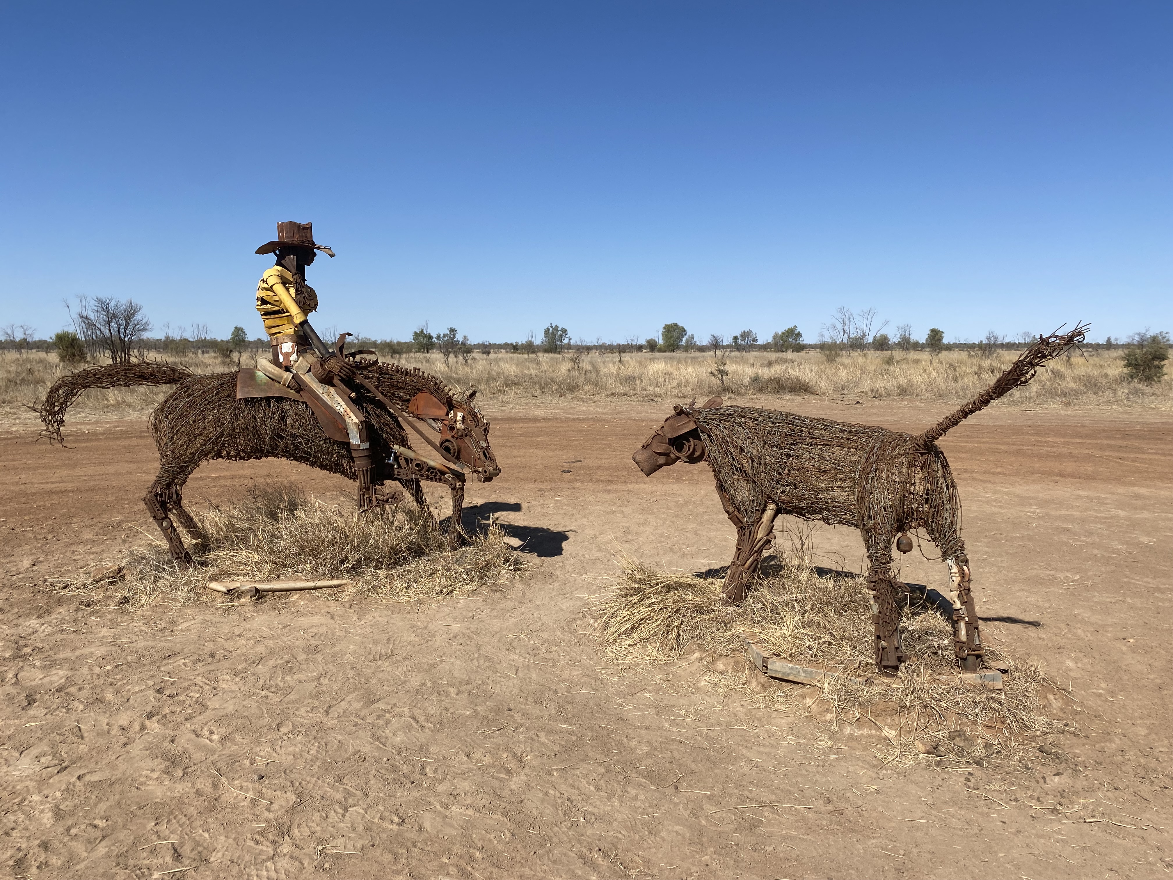 Lake Dunn Sculpture Trail #11steemCreated with Sketch.suep56 (70)in CCS • 5 days ago Horsemen and helicopters are the next sculptures we see on this section of the Lake Dunn Sculpture Trail which is a 200 km circuit that loops between Aramac, Lake Dunn and Jericho. CameraiPhone 11 #photography #travelphotography #steemphotos #ccs #art