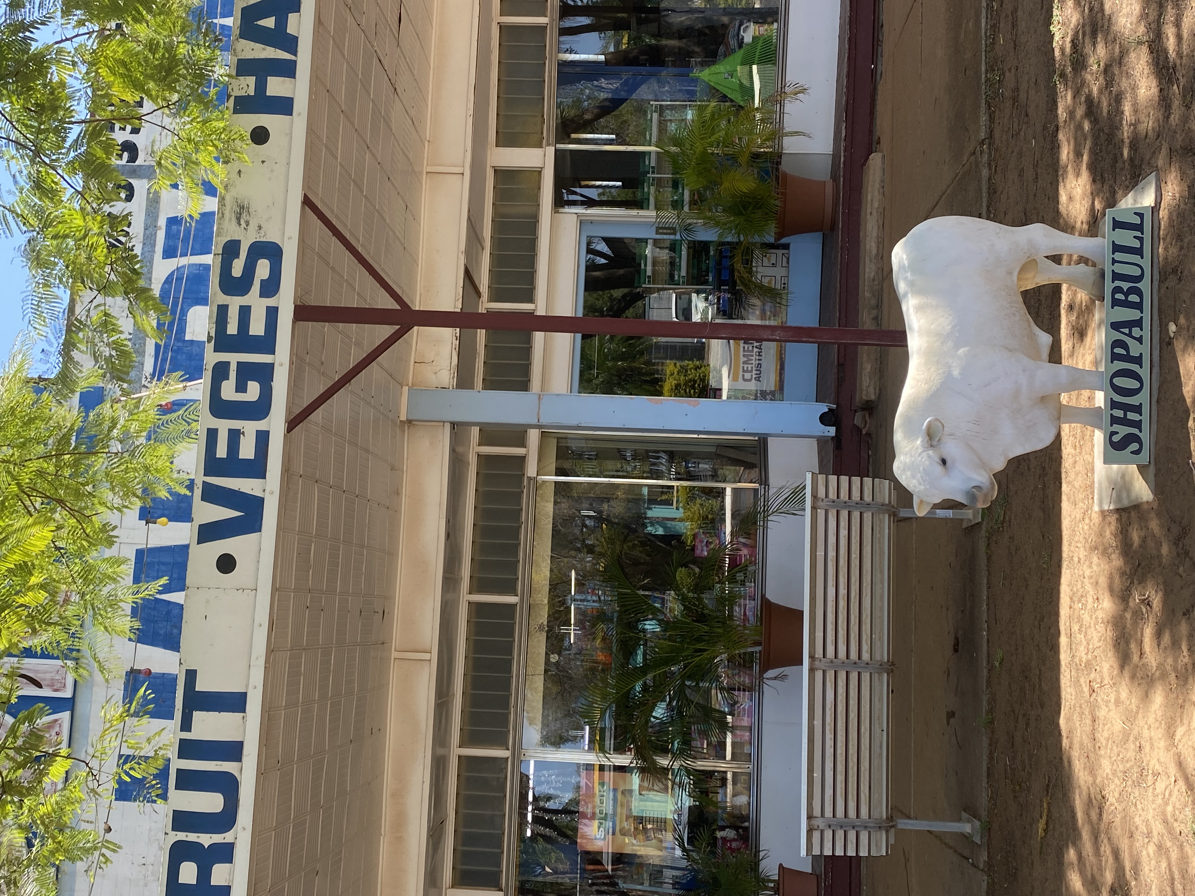 On our circumnavigation of The Lake Dunn Sculpture Trail which is a 200 km circuit that loops between Aramac, Lake Dunn and Jericho, the kick off point is Aramac , the only town on the route that greets us with sculptures in a bullish theme.