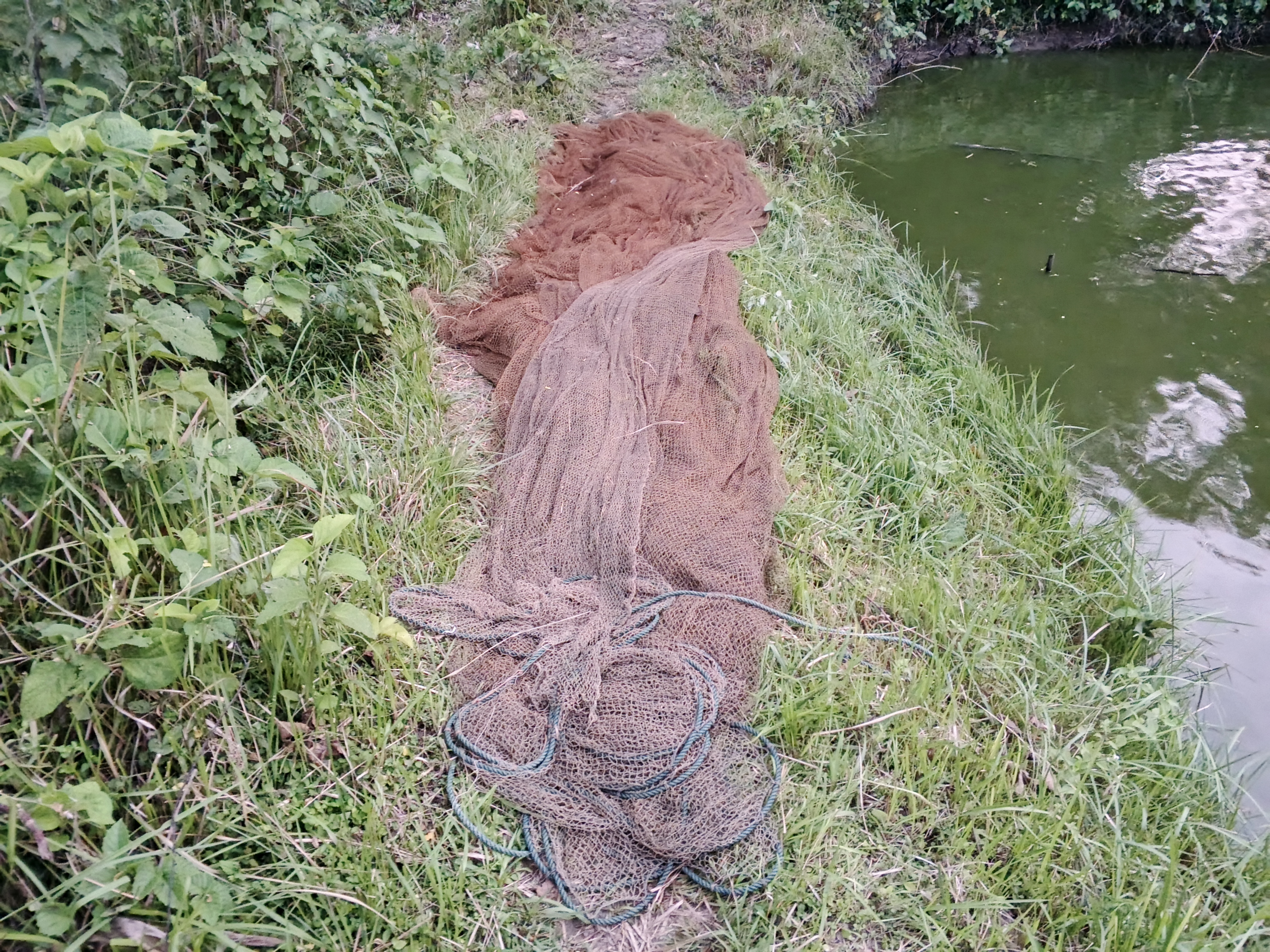 If you look at this photograph, you can see that there is a very big net lying on the bank of the pond. In fact, when the fishermen catch fish with this net, they are very happy to complete the fishing activities. And I like such beautiful activities. So when I see all these activities, I try to use them. Similarly, when I was standing on the bank of the pond, I saw this beautiful net lying there, and I took a picture of it.