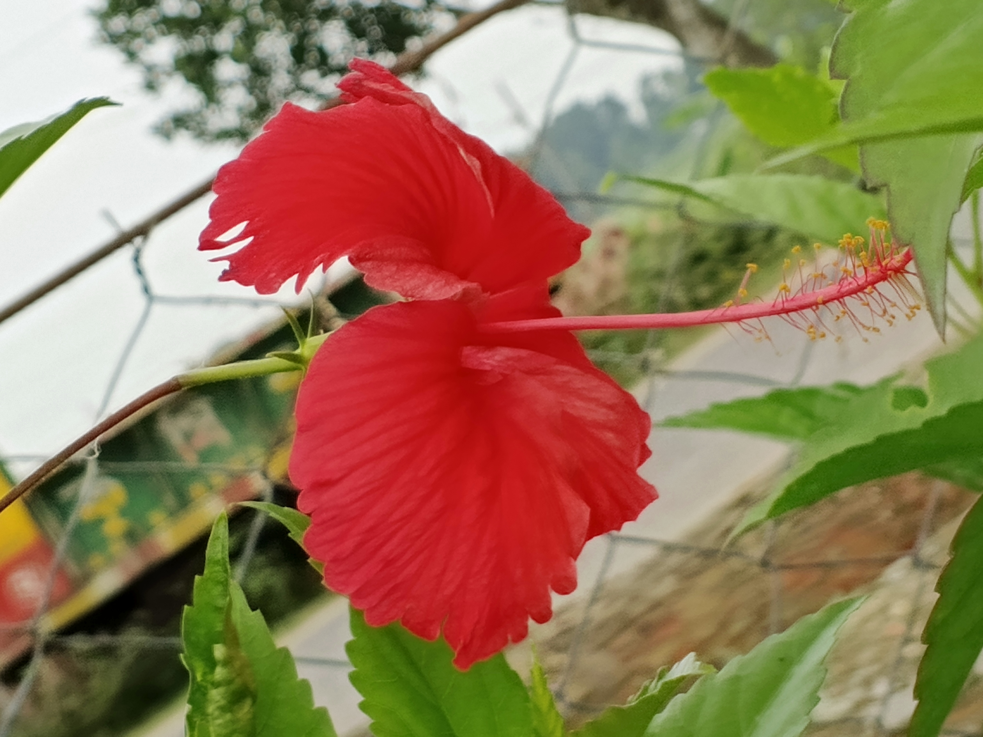 This photography captures a beautiful japa flower. I like to capture different types of flowers. But among them, this type of japa flower is my favorite and most beautiful. When I saw this japa flower blooming beautifully on the tree, I tried to capture its photo. And that's how I captured this beautiful flower photo.