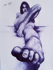 An impressive drawing with the use of the blue pen. You give so much realism to the image since you highlight the shadows perfectly, that it looks like a photograph. Excellent drawing of the female body. @historiasamorlez