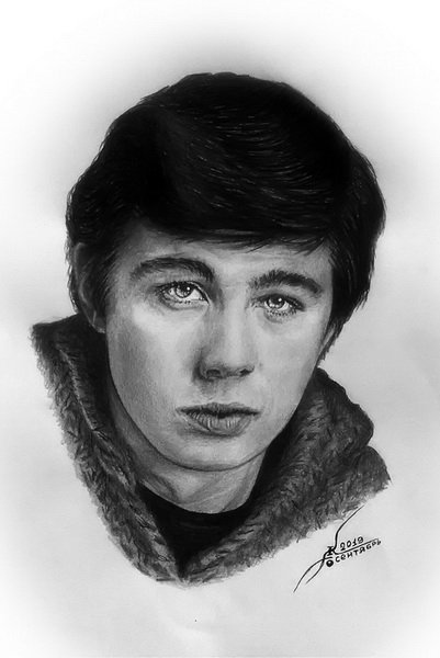 A very professional graphite drawing, which perfectly details the features of this face. It looks like a photograph, since it was drawn to perfection. @historiasamorlez