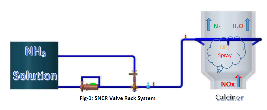 It suffices to state that aqueous ammonia (NH3) is injected at a specific point in the process characterized by a suitable temperature window between 850 and 1050 °C depending on residence time, turbulence, oxygen content, and a number of other factors specific to the given gas stream.