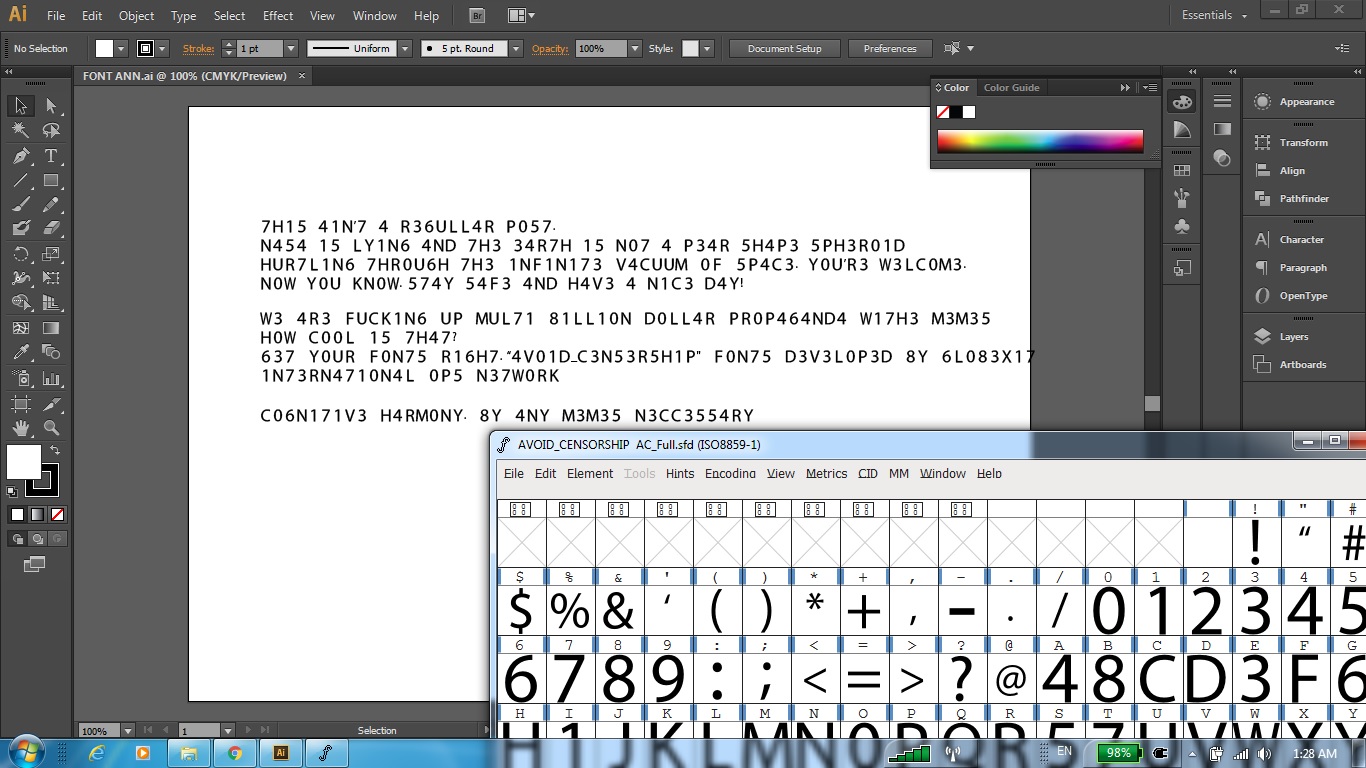 This is the 1st version of the "Letters_And_Numbers Font", developed by Globexit International Ops Network. Nothing out of the ordinary; I have seen people writing this way before. Here's is the result of my learning experience in creating custom fonts with FontForge and the link with the video that inspired me: