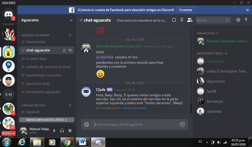 NOTA: Y como puedes ver el chat está nuevo, porque @Clyde me escribe:
