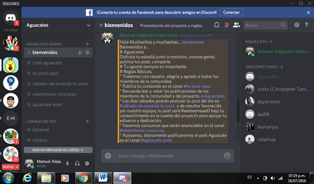 En #bienvenidos (valga la redundancia) te damos la bienvenida y te mostramos algunas normas muy sencillas, para compartir y hacer Steem+Discord+Life como un @Aguacates más.