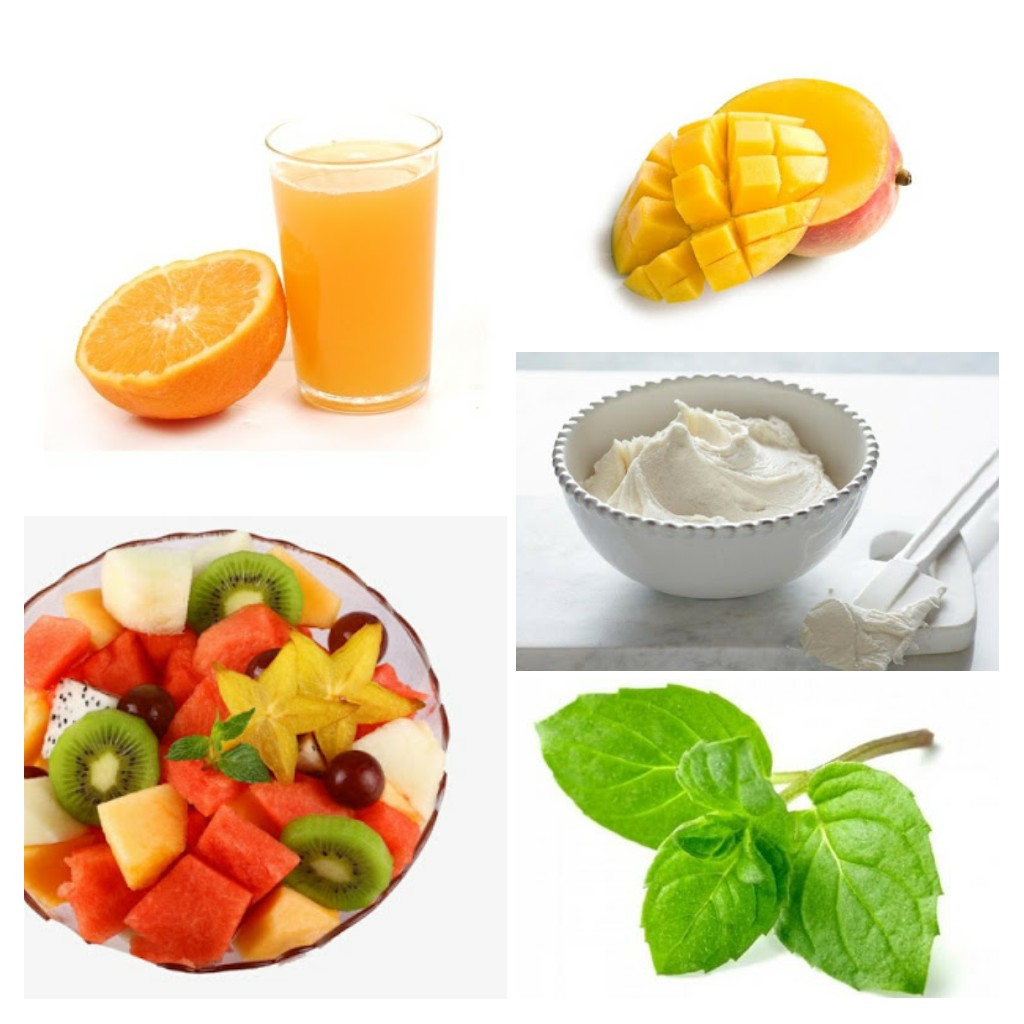 1. Pelar los mangos y cortar en cubos. Procesar hasta obtener un puré y mezclar con el jugo de naranja.