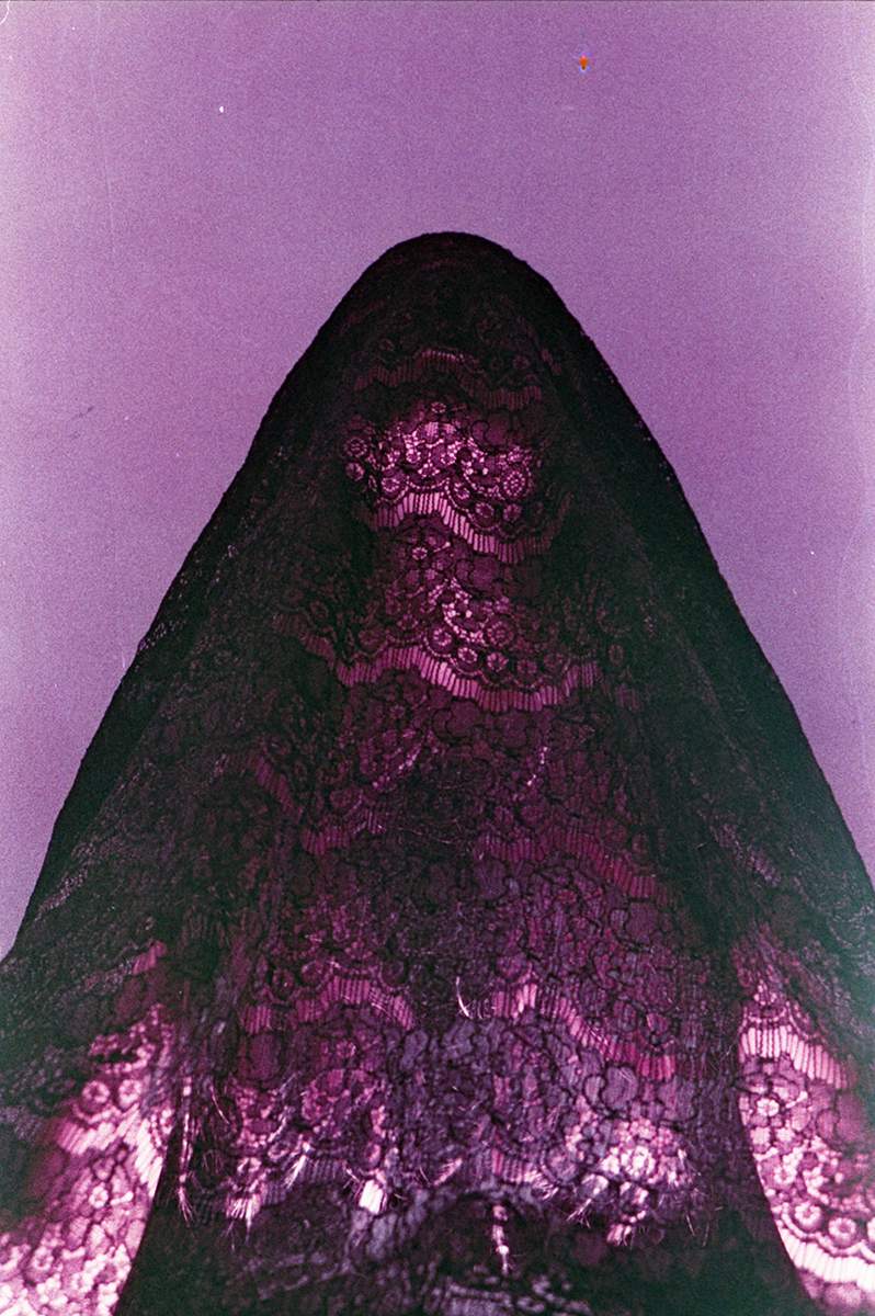 Y luego de probar la luz hice la foto que quería, que se trataba de utiliza un velo calado negro con la luz viniendo de abajo. Aquí está el resultado: