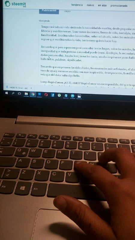 Recuerdo que poco a poco empecé a escribir textos largos, sobre los miedos, las emociones, la inseguridad que toda persona a esa edad puede tener. El colegio, la secundaria agitaban mis dedos para escribir. Amaba leer, ya no leo tanto, amaba inspirarme ya no hallo musas, ya no hallo letras, palabras, significados.