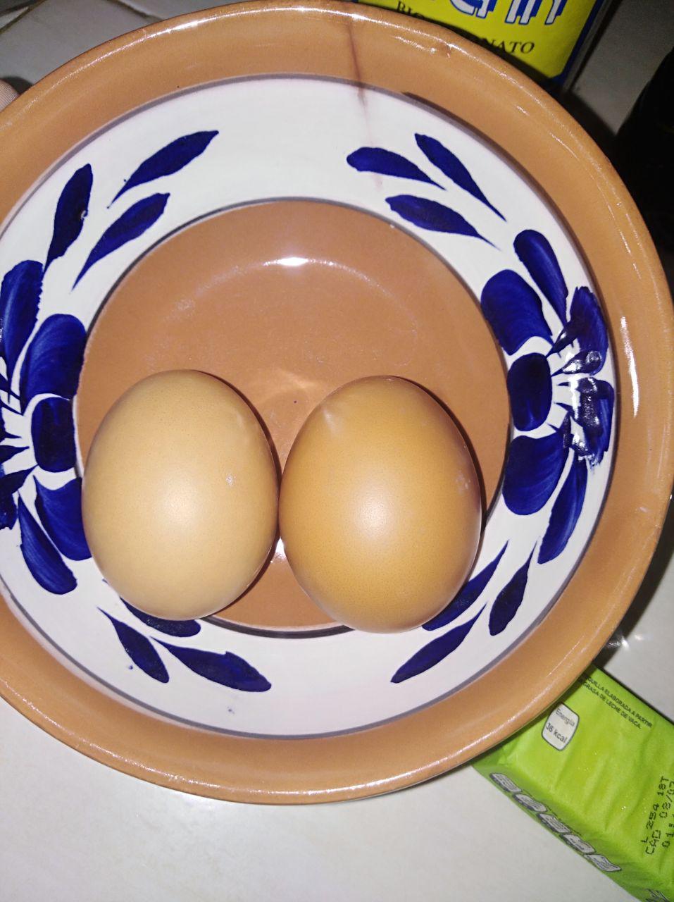Después colocamos en otro recipiente la mantequilla con los huevos y mezclamos.