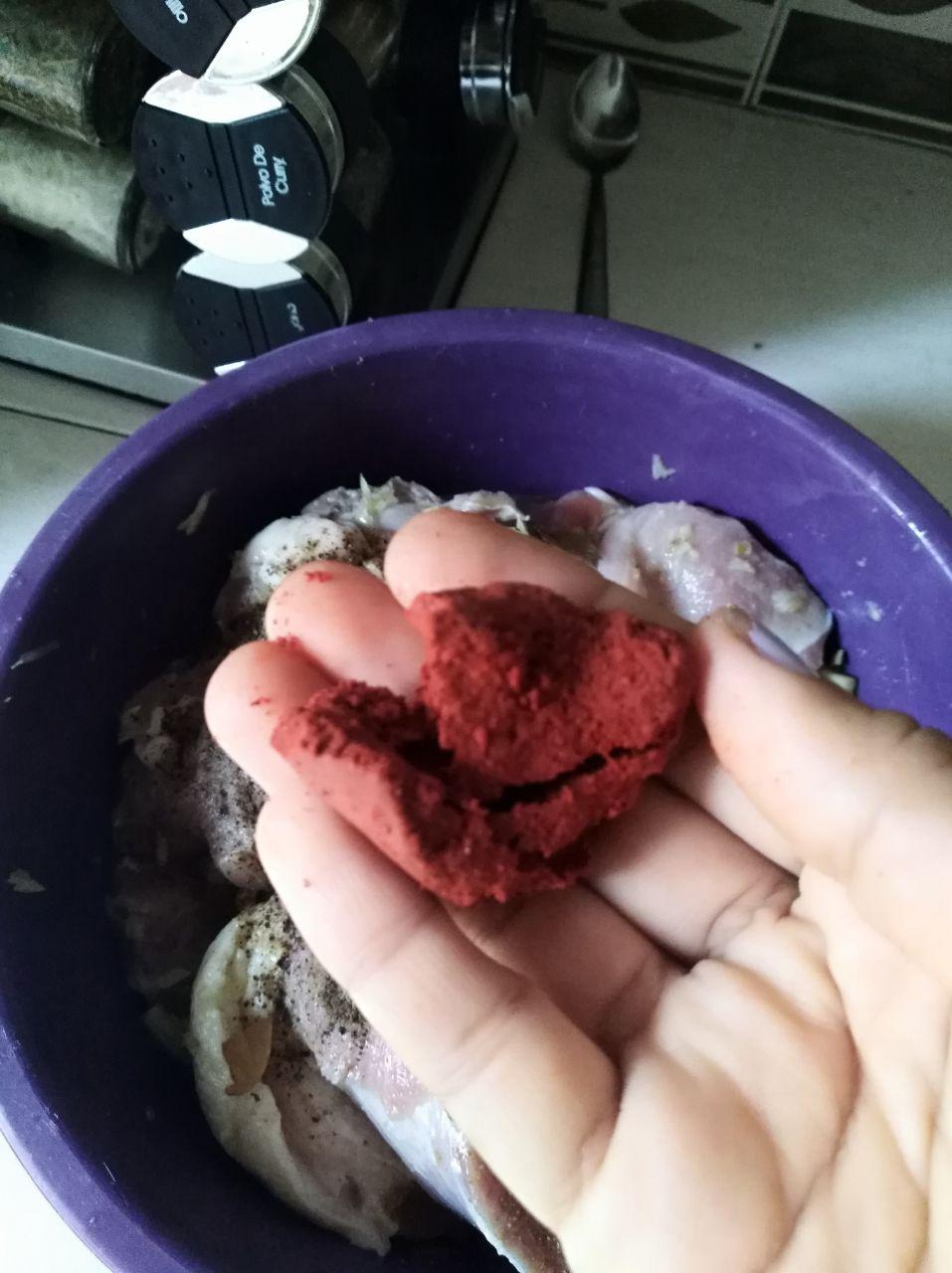 La pasta de achiote igual la desbaratan con las manos y untan sobre la carne.