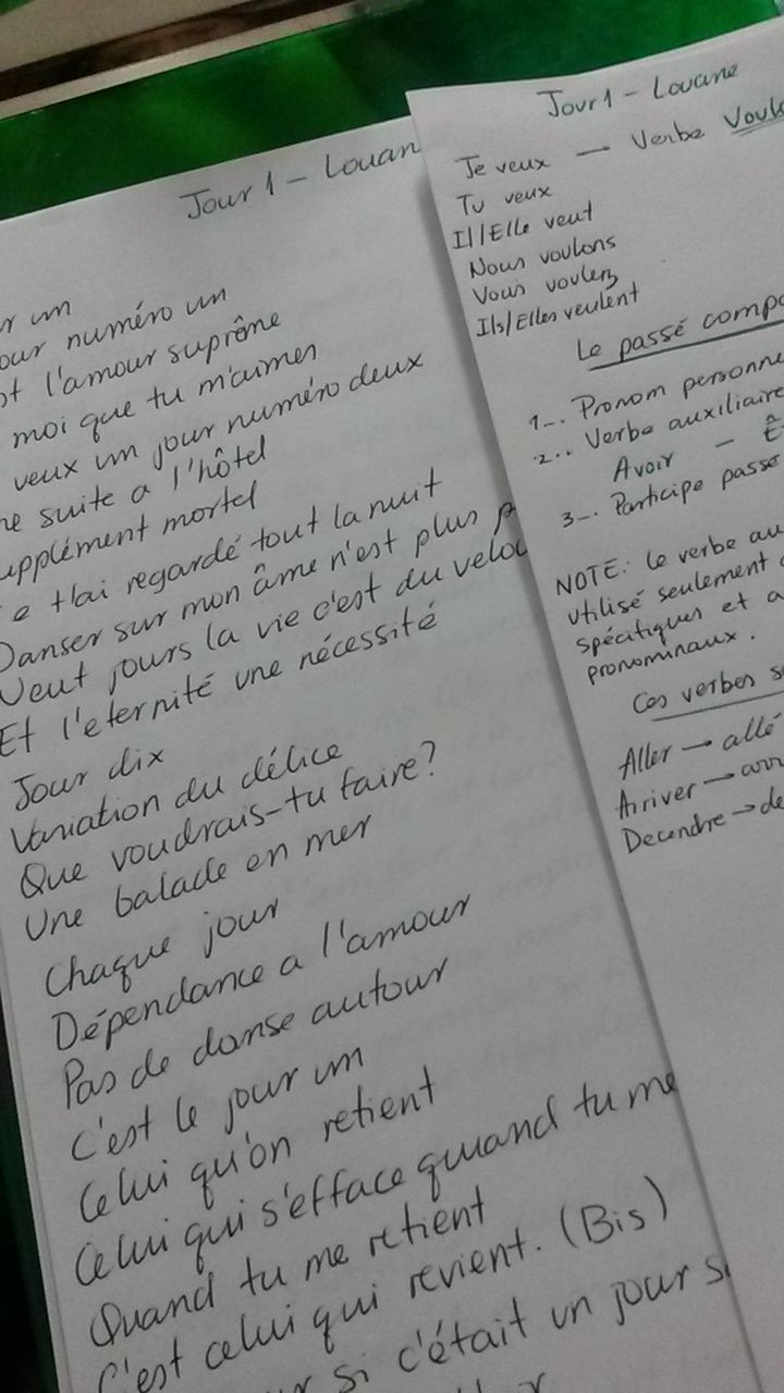 Por esto actualmente estoy copiando las letras de las canciones que más me gustan de cantantes como Stromae / Louane / Zaz / Amir / Fréro Delavega / Indila / etc... y así traducir sus letras, aprender vocabulario, descomponer los verbos desconocidos e identificar sus tiempos verbales respectivos.