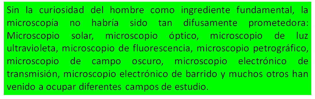 El aporte de la microscopía ha sido tal, que nos atreveríamos asegurar: ningún otro instrumento creado por el hombre ha significado ser tan clave como para perpetuar la especie humana.