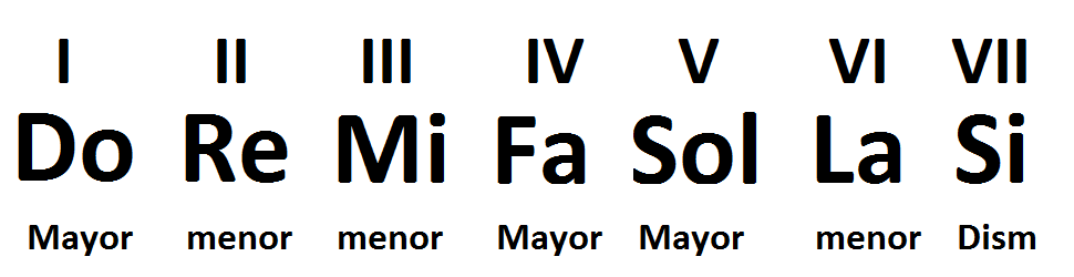 Ahora que sabemos que las notas de las escalas se ordenan con números romanos, veremos que acorde podríamos usar en cada nota.