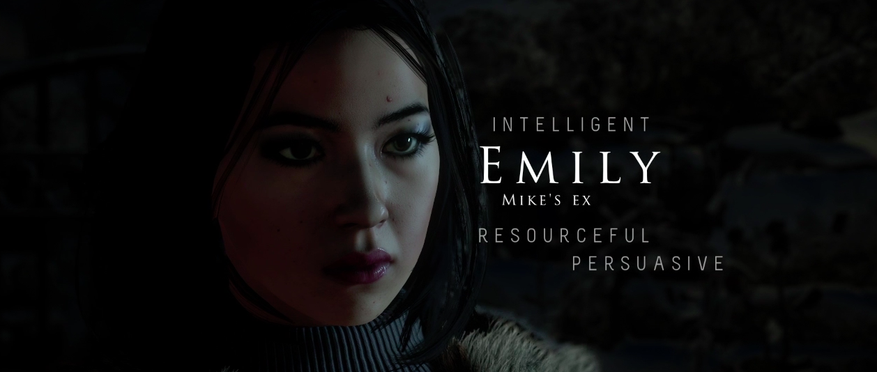 Emily: Hay mujeres irritantes... Y luego está Emily, se hace difícil tomarle empatía desde el primer momento, sin embargo, es firme en los momentos críticos y se muestra lógica para tomar decisiones trascendentales.