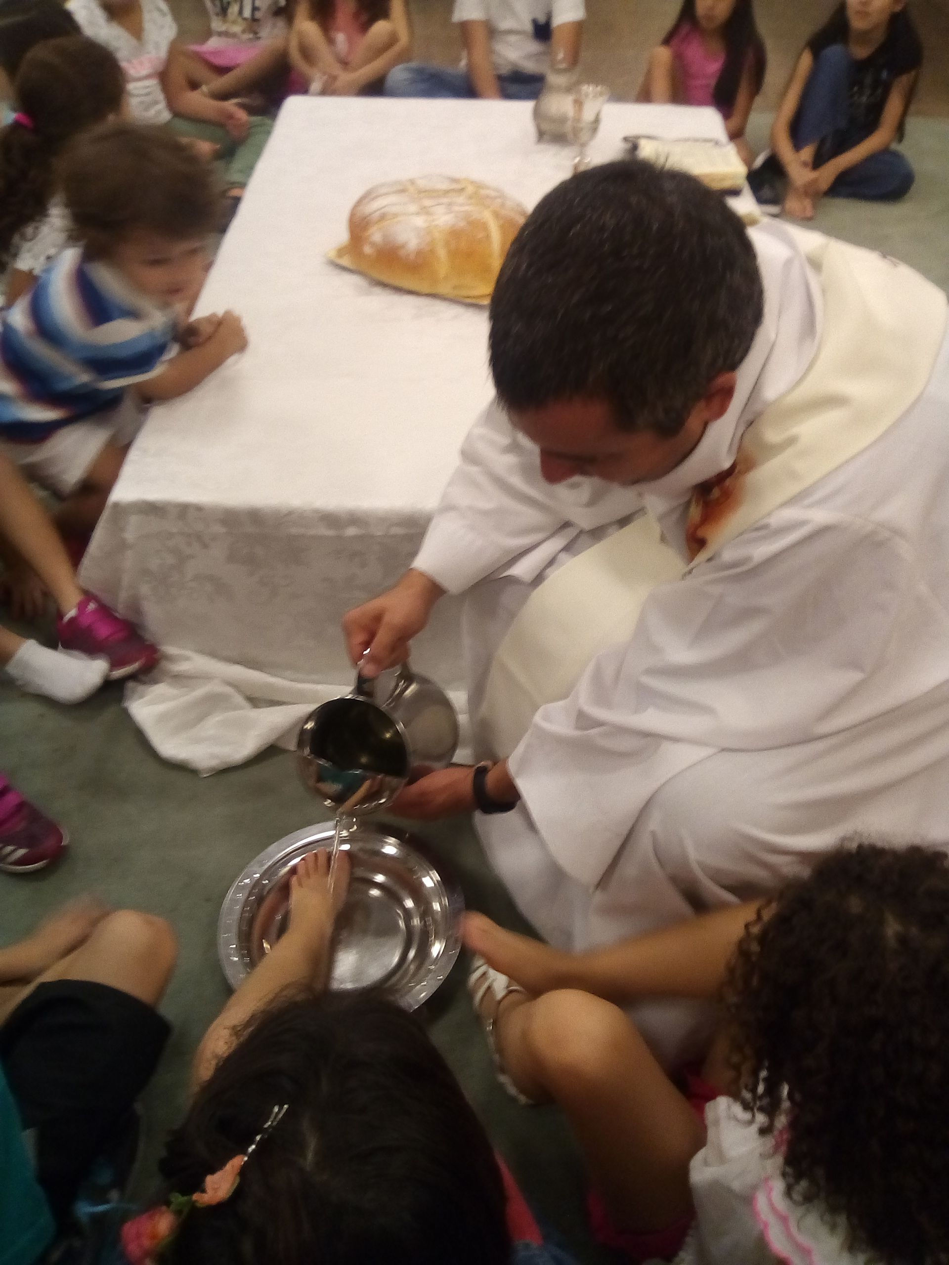 Hoy cuando el sacerdote lavaba los pies de los niños que se preparan para la primera comunión en la parroquia a la que asisto, se arrodilló ante cada uno de ellos y vertió agua en sus pies, luego los secó con una toalla, los niños sonreían emocionados, acto seguido reflexionaron sobre lo que sintieron y lo que estarían dispuestos a hacer por su prójimo, desde su visión infantil, reconocieron el acto como un gesto de amor.