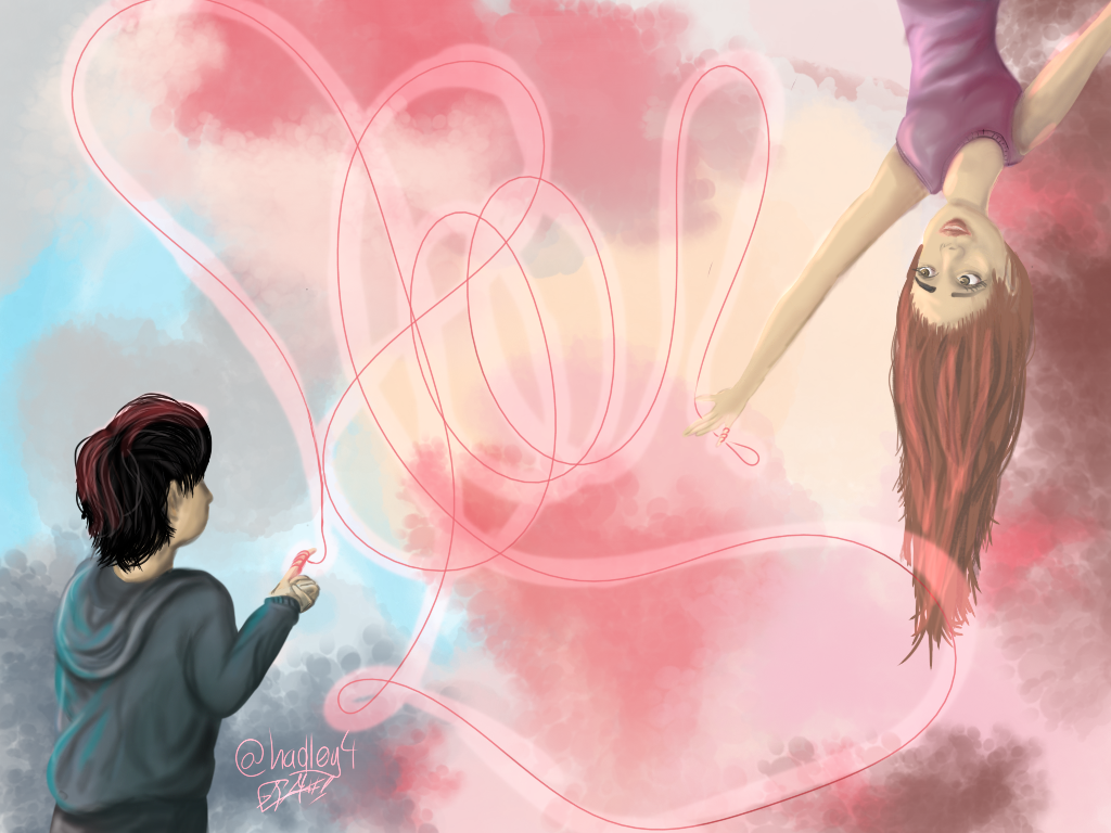 Te estoy hablando de la leyenda del hilo rojo, la cual asegura que los dioses, unen a dos almas con un hilo rojo invisble, destinandolas a ser amantes, independientemente de la hora, el lugar o la circunstancia. Por tanto, este cordón mágico se puede estirar o enredar, pero nunca puede romperse.