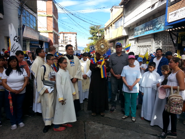 Con Jesús Sacramentado a la cabeza, la feligresía recorrió la avenida 3 Independencia hasta llegar al viaducto Campo Elías, allí se desarrolló el acto central que congregó a las organizaciones sociales, de iglesia, movimientos estudiantiles, partidos políticos y público en general.