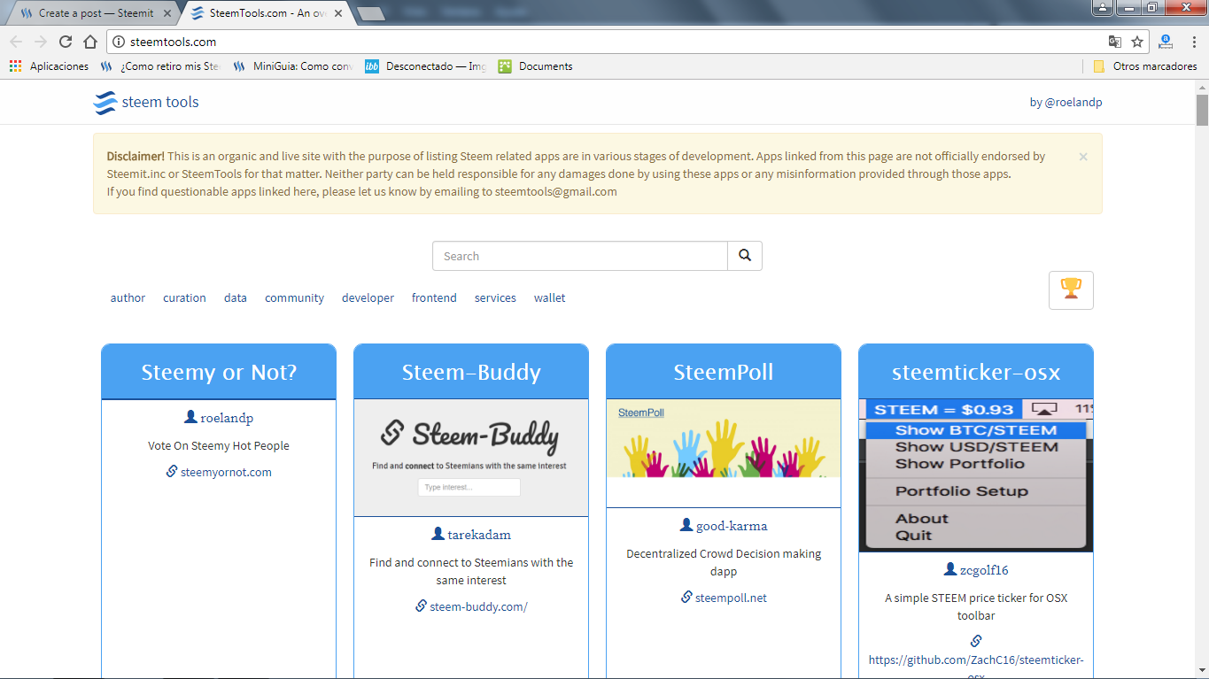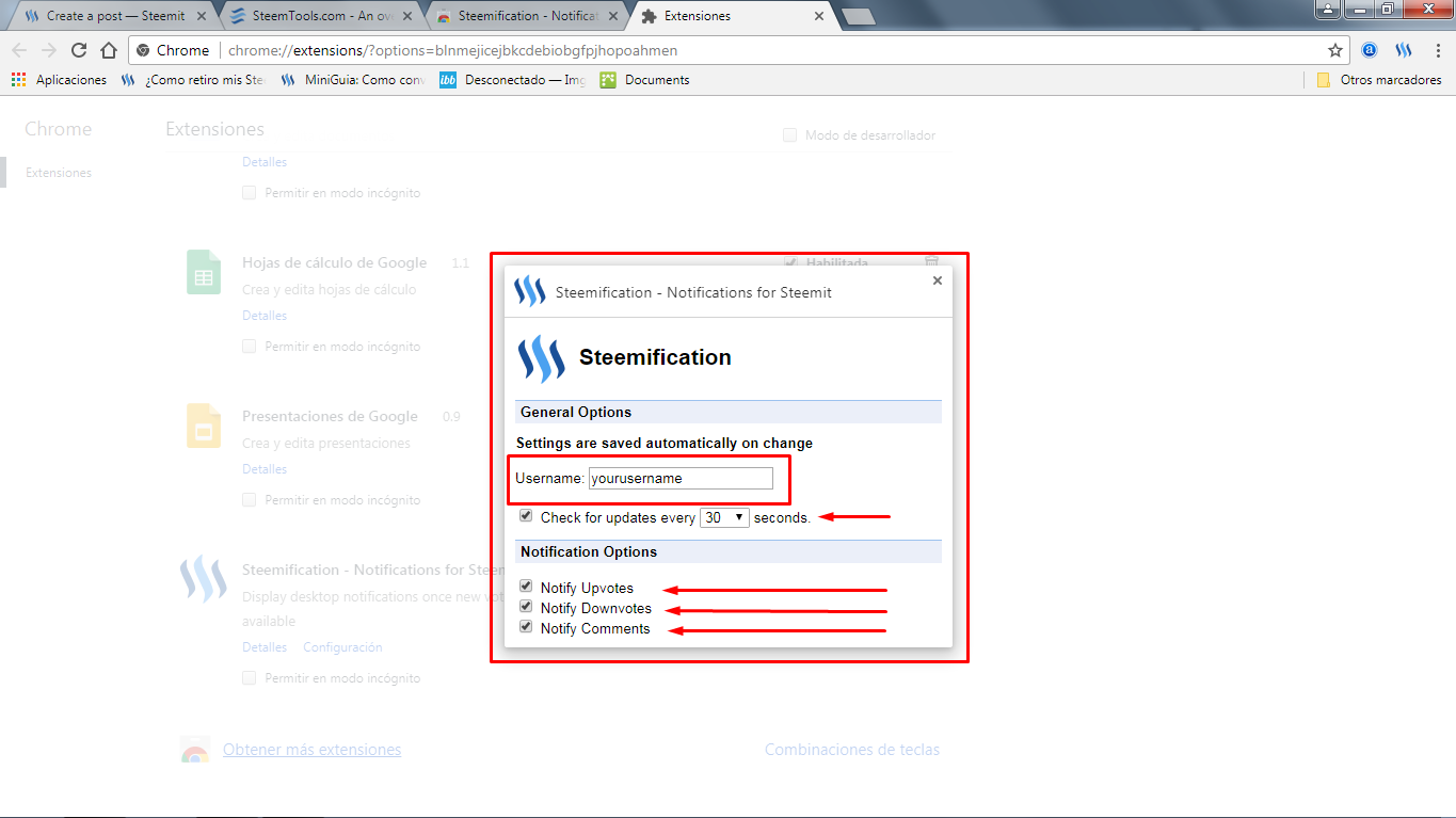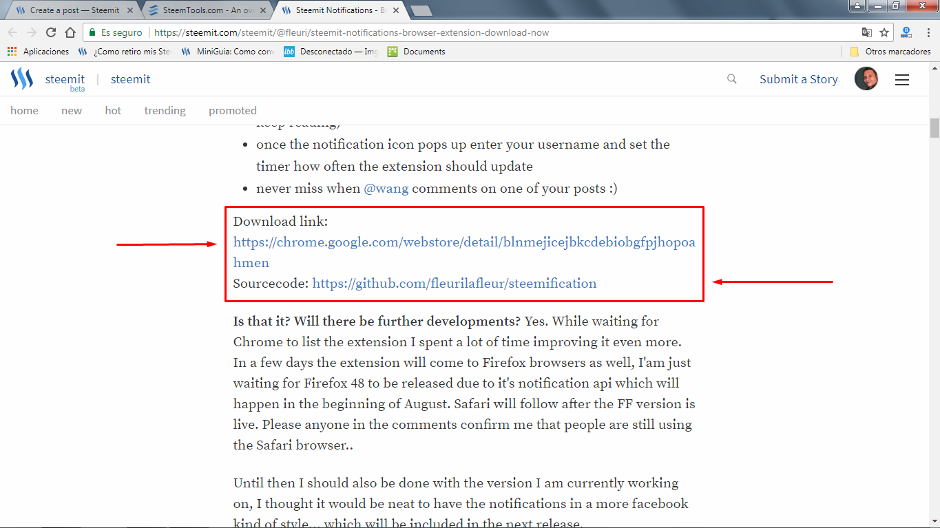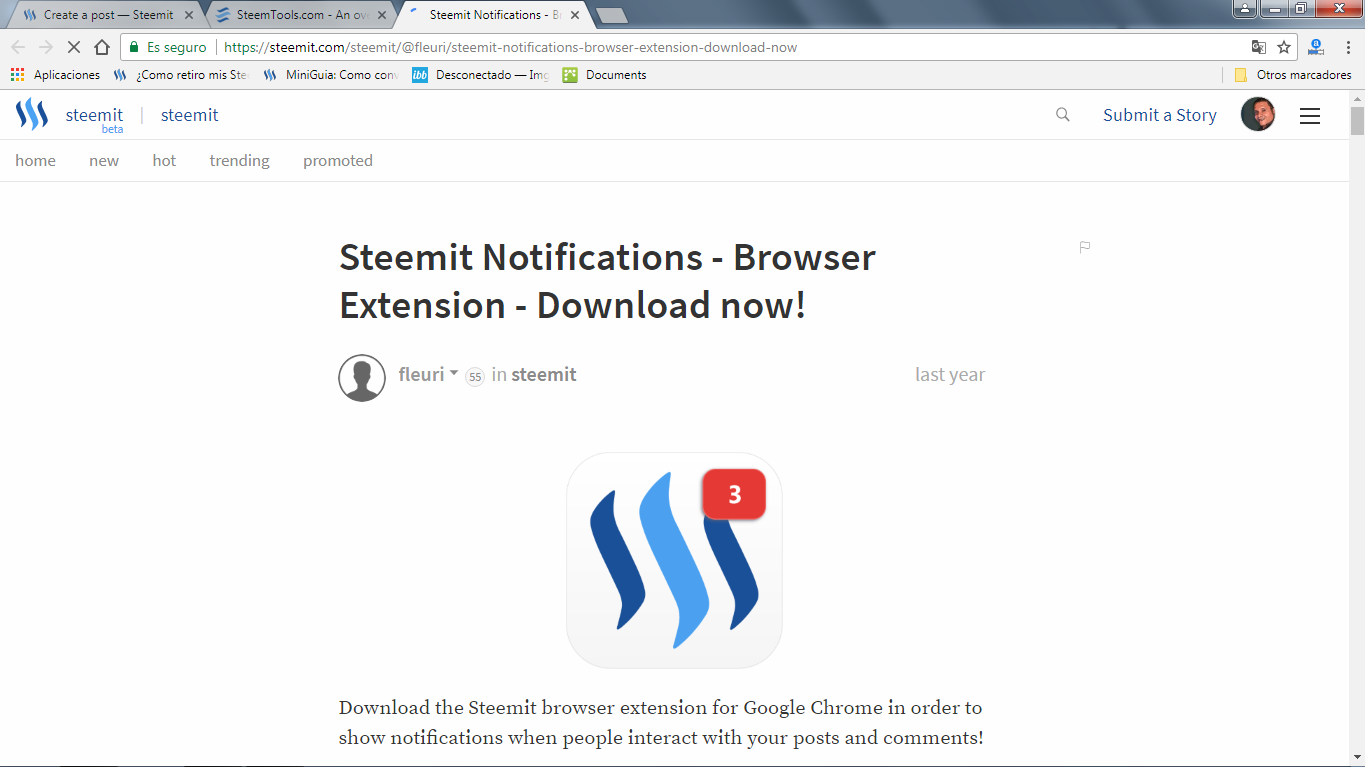 Chrome Web Store: App sobre Notificaciones de Steemit
