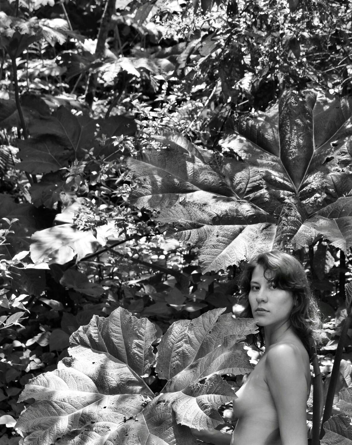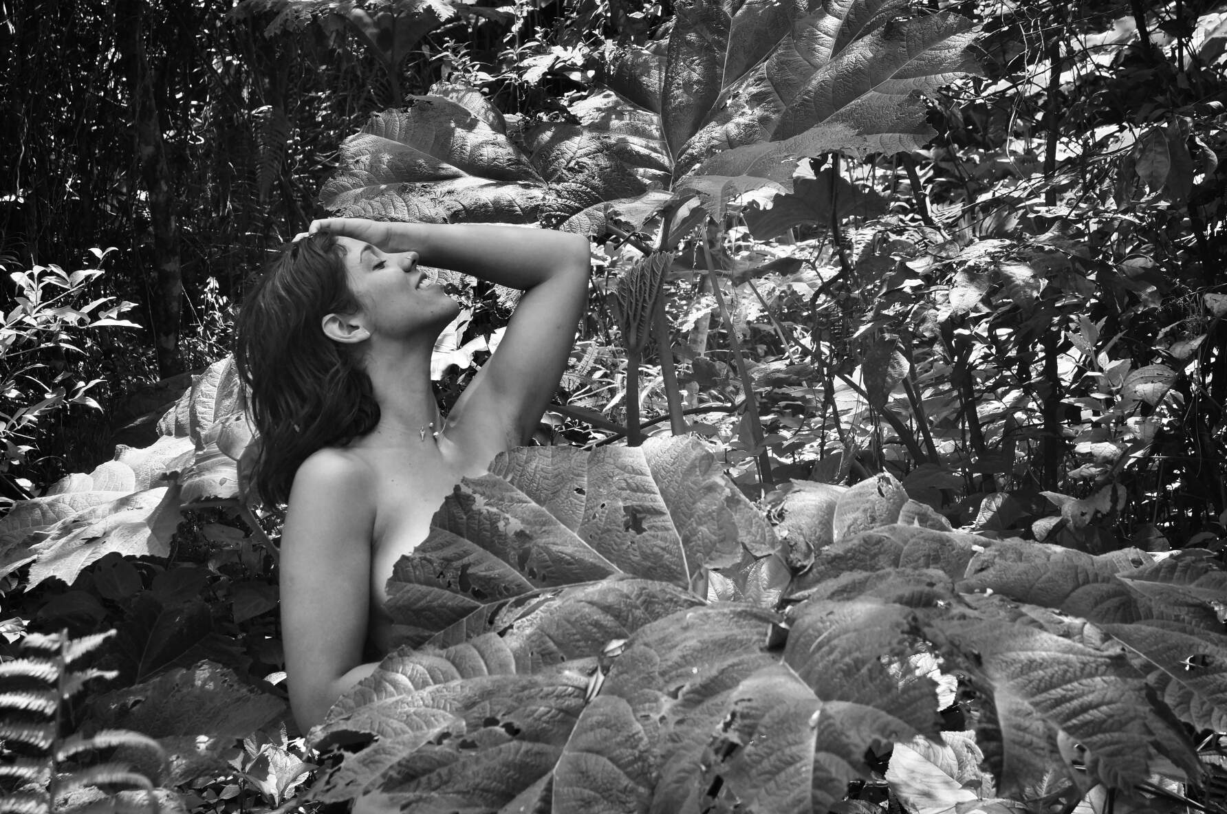 Ante mis ojos aparecio, el sitio y el momento perfecto, no lo pude evitar y la foto tuve que tomar, a mi querida acompañante le pedí que por favor me sirviera de modelo, porque mi visión era alegórica al cuadro "El nacimiento de Afrodita" de Boticelli, necesitaba la ninfa que se bañaria con el agua del rosio que caían de grandes hojas en las montañas de los paramos andinos venezolanos.