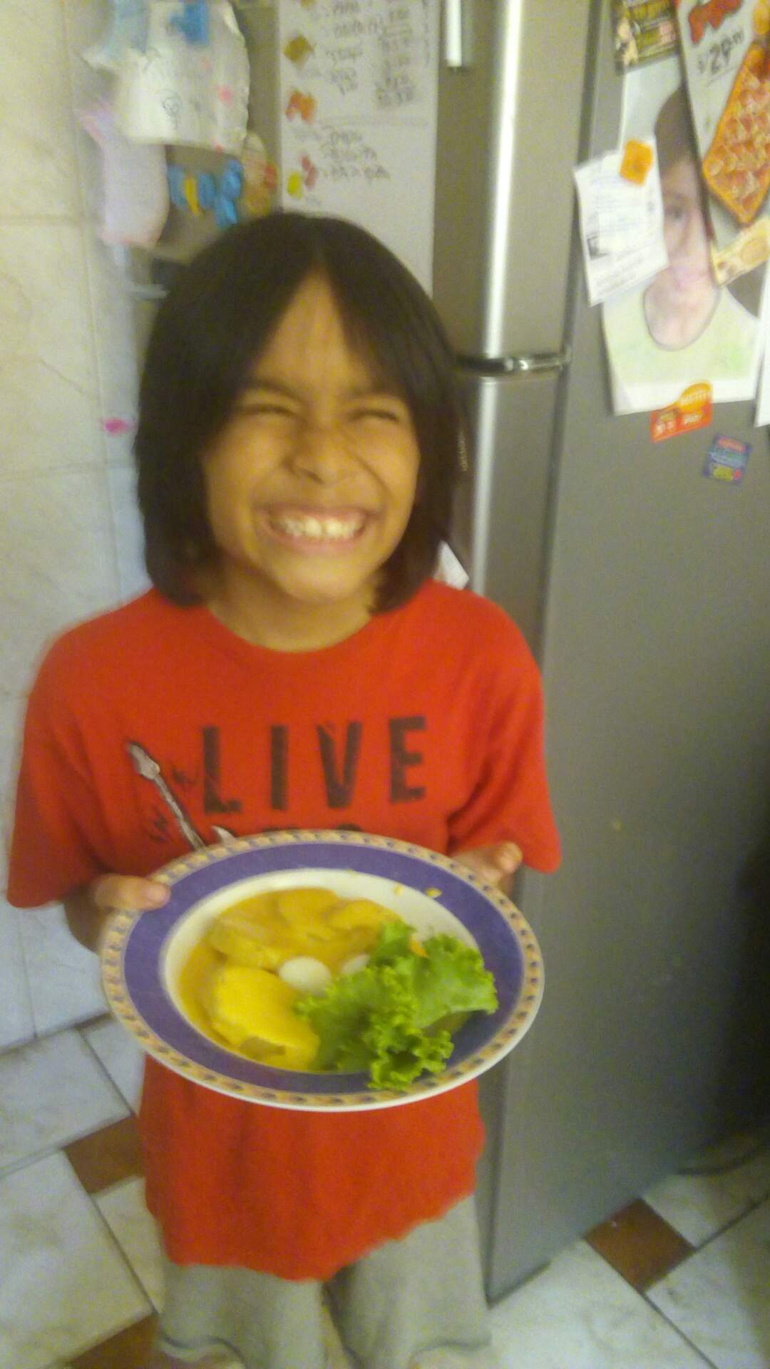 Nel feliz con su plato! Listo para comer!