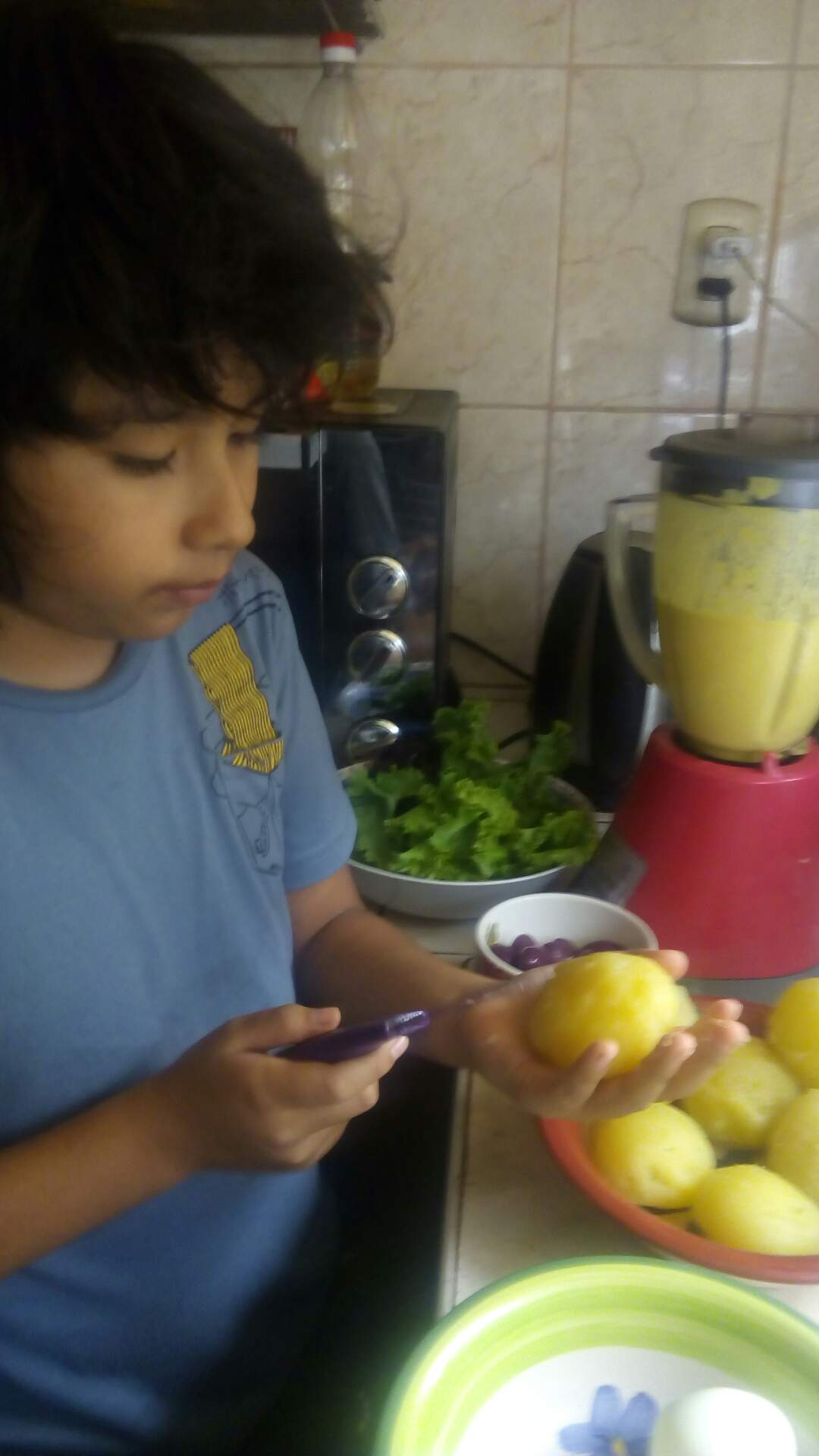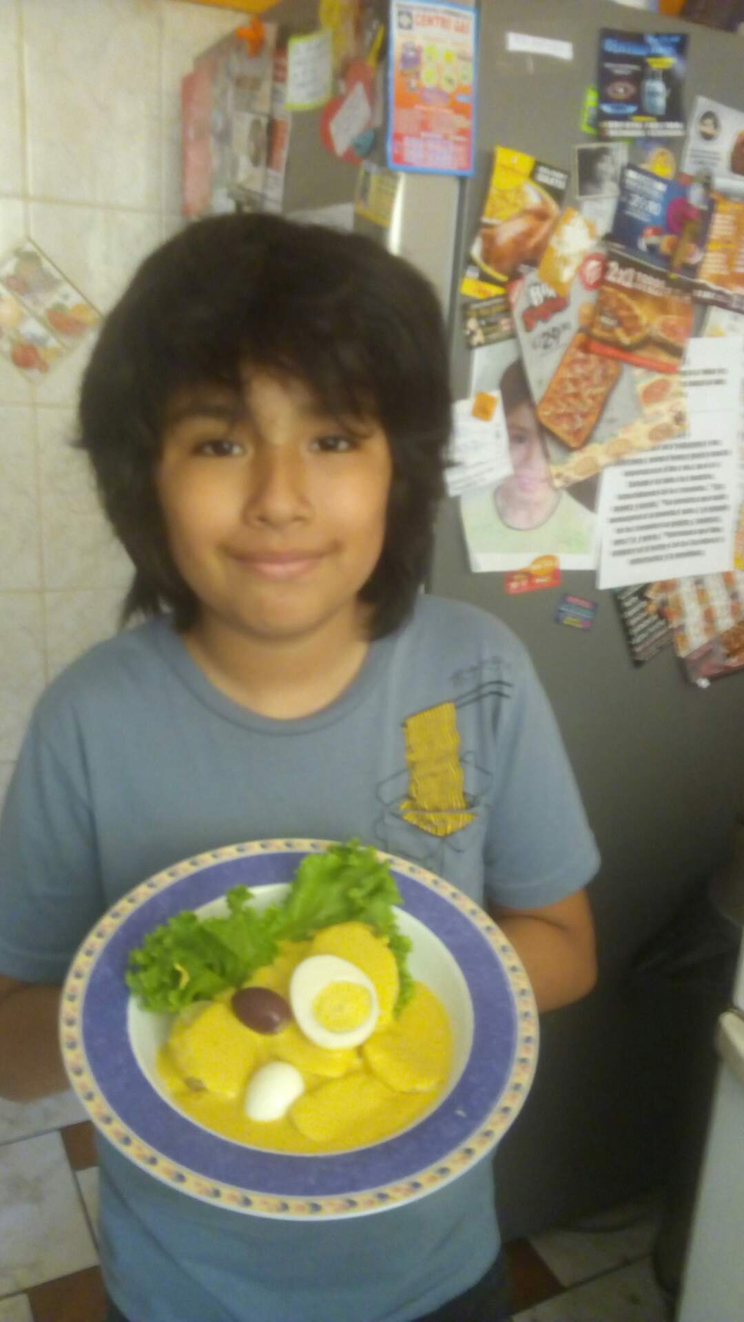 Así que este es el registro de como hizo su primera papa a la huancaína el solito, yo lo dirigí y acompañé, pero él hizo todo!