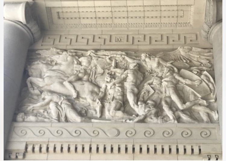 At the entrance there are many figures carved in marble.