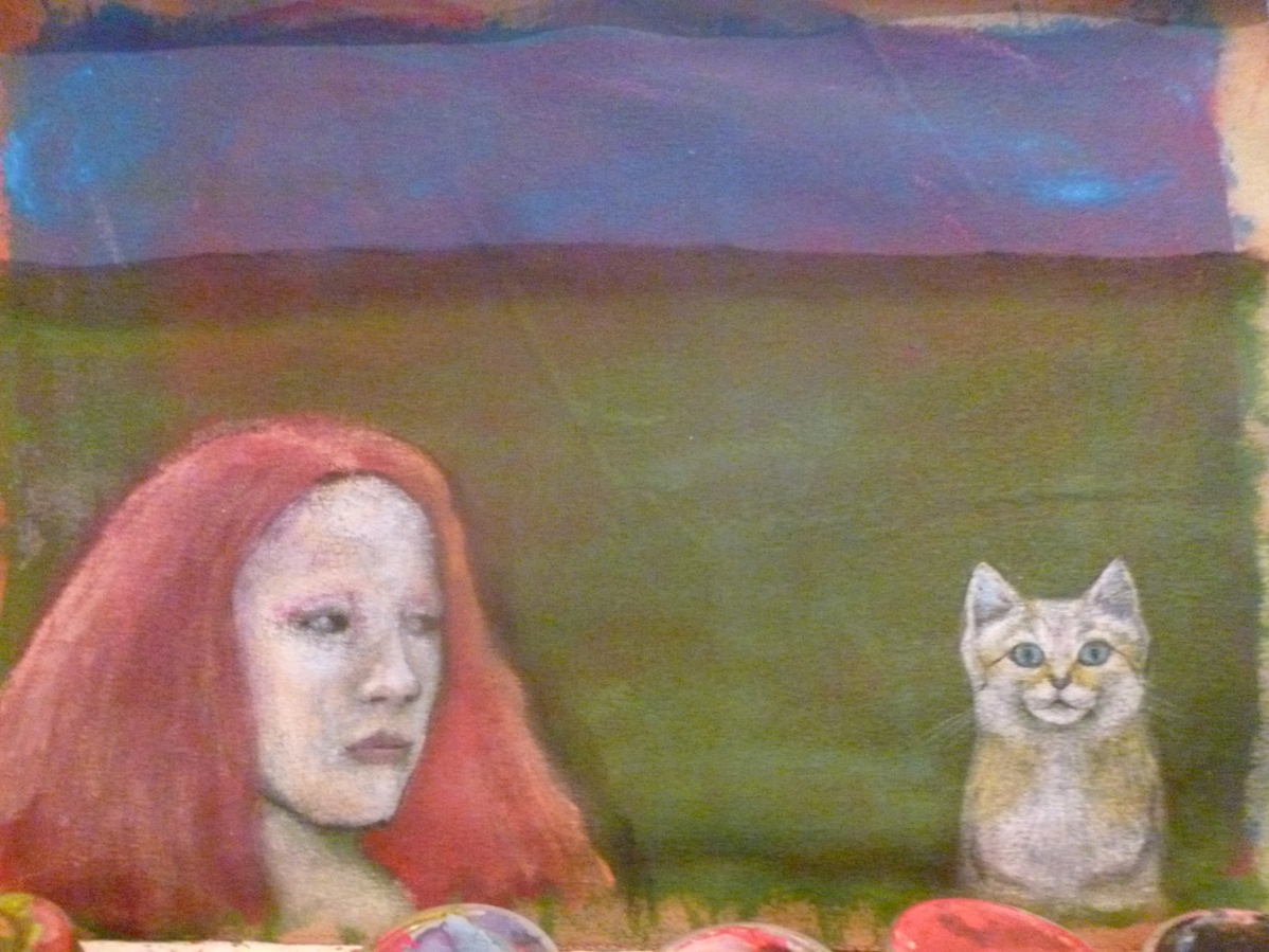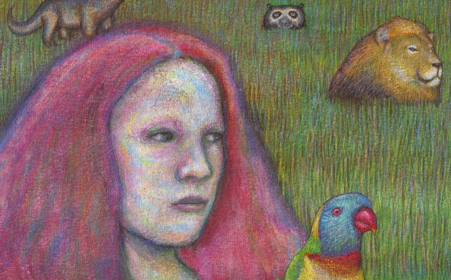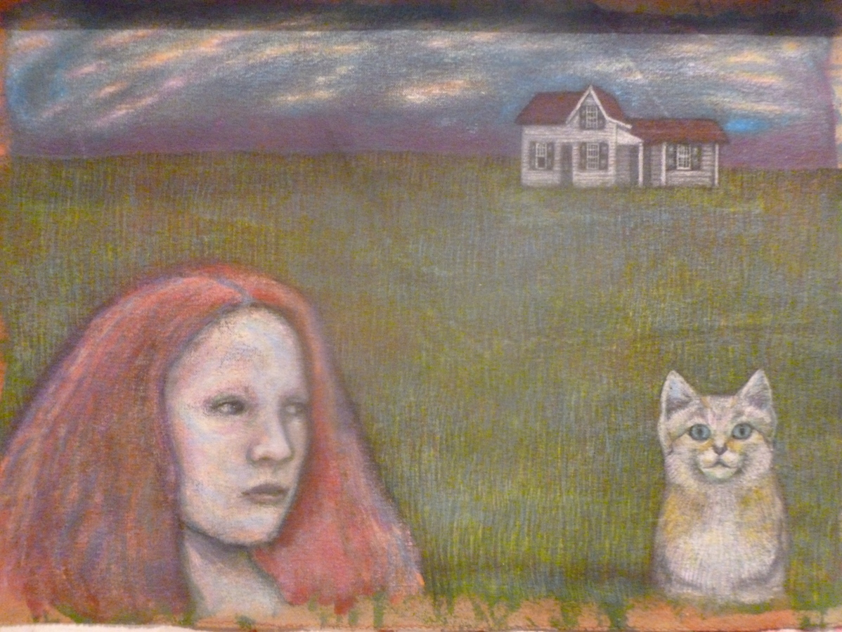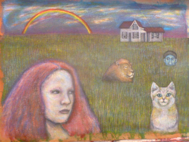 Hola amigos de steemit hoy les mostraré el proceso de mi más reciente pintura. Ésta es una especie de parodia triste de las portadas de revistas Atalaya, esas en las cuales seres humanos y animales conviven en total armonía, acá podemos observar a una mujer pelirroja que está rodeada de seres que por la expresión meditativa y concentrada que parecen sacados de su imaginación que del mundo terrenal.