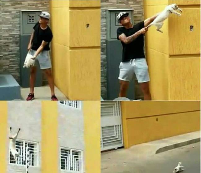Para quienes desconocen el hecho, les cuento más o menos de que iba el asunto: Un jovencito de 20 años, David Barreto, se propuso la meta de hacer que un gato volara por encima del portón eléctrico de la residencia. A su compañero de equipo, Eduin Quero, esto le pareció fantástico, incluso pensó que era necesario documentar el momento con un video y publicarlo en las redes sociales porque, vamos, era súper cómico ver al gato siendo torturado.