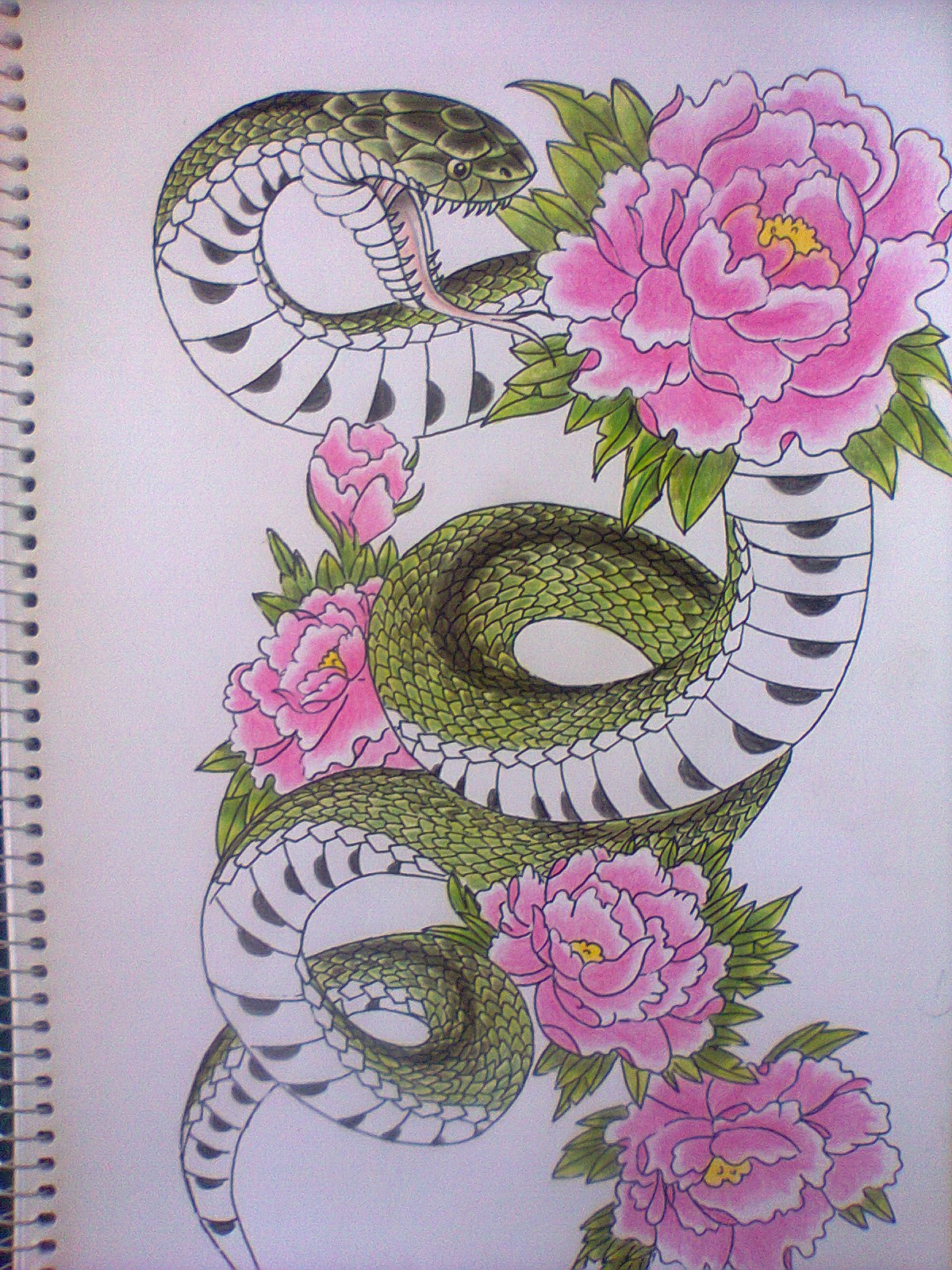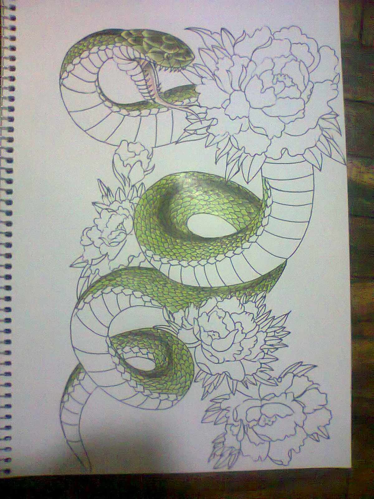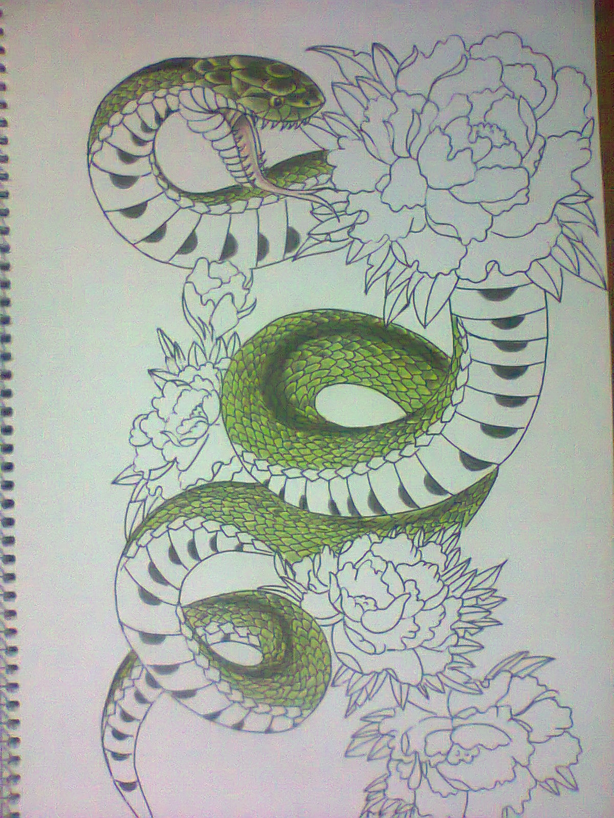 Ahora bien, la razon por la cual decidi titular de este modo este post fue que, gracias a un increible y muy perceptivo amigo, me percate que sin querer queriendo, este dibujo retrataba algo simbolico, una percepcion la cual ha inspirado a muchisimos artistas, y es el de la belleza, esa cualidad capaz de producir en quien los contempla cierto placer o bien admiracion. Ahora bien, como podemos apreciar, vemos a esta gran serpiente a lo largo del dibujo rodeada por vistosas y coloridas flores, lo cual representa la belleza, la magnificencia y la tentacion; caracteristicas que usualmente atribuimos a esas personas, esos animales, incluso a esos objetos que exhuman esa aura, ese porte, esa belleza que tanto nos cautivas, sin embargo, muchas veces ignoramos que la belleza es un arma de doble filo, una ventajosa pero a la vez peligrosa caracteristica, que ha llevado a mas de uno a su inminente perdición