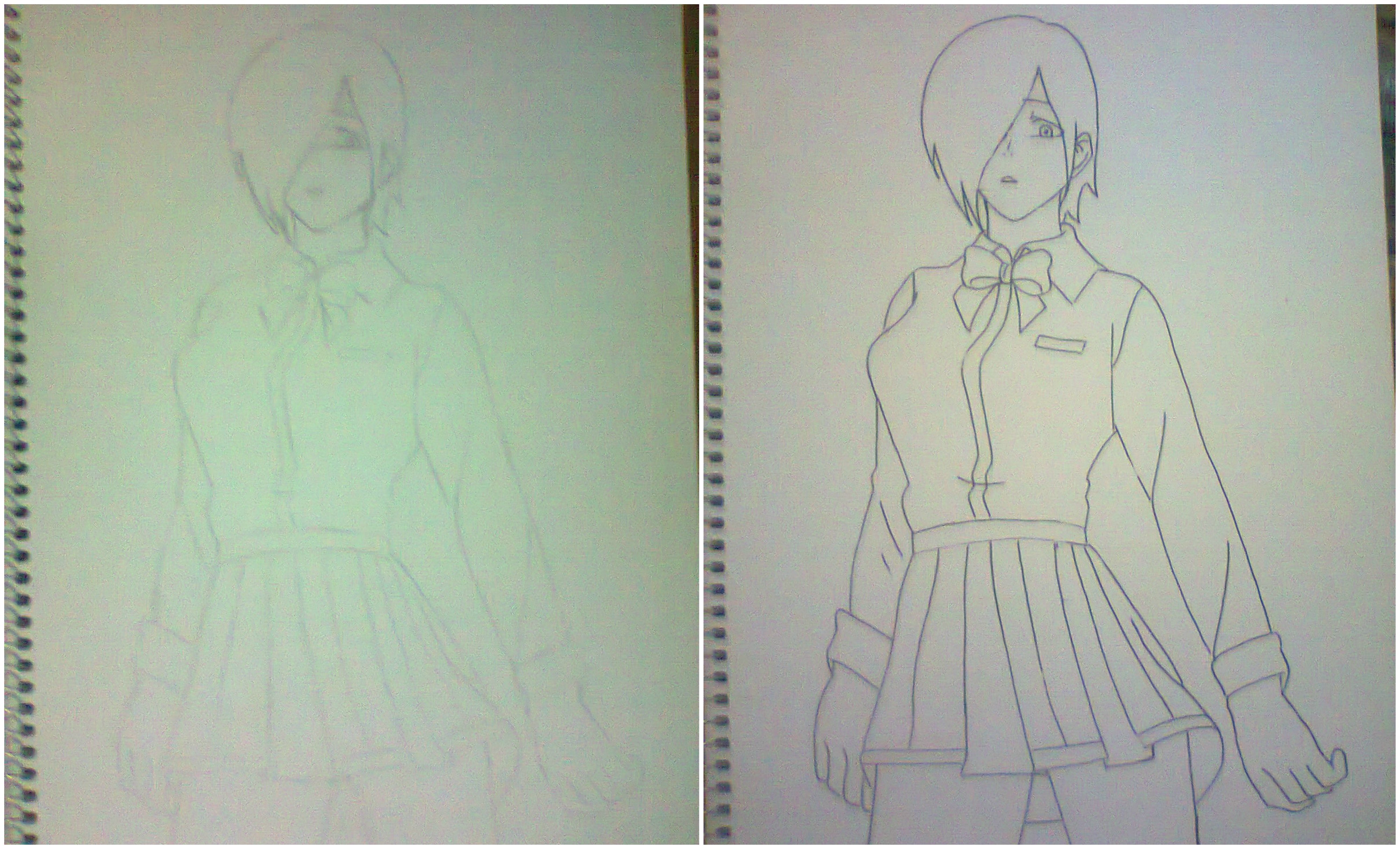 Luego pase a realizar el vibrante kagune de Touka, pues, para serle sincero, no me creia capaz de hacerlo y buen, pense que si fallaba al menos no habria tenido que desechar un dibujo casi completo