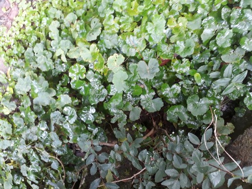 También cultivamos muchas especies de hierbas medicinales y aromáticas como la Menta, la Hierbabuena (Mentha spicata), la Lochita (Hydrocotyle Bonariensis), el Té Filipino (Carmona microphila), la Zábila (Aloe vera) , el Orégano (Origanum vulgare) y la Centella Asiática (Centella asiática), esta última representada en la fotografía de abajo.